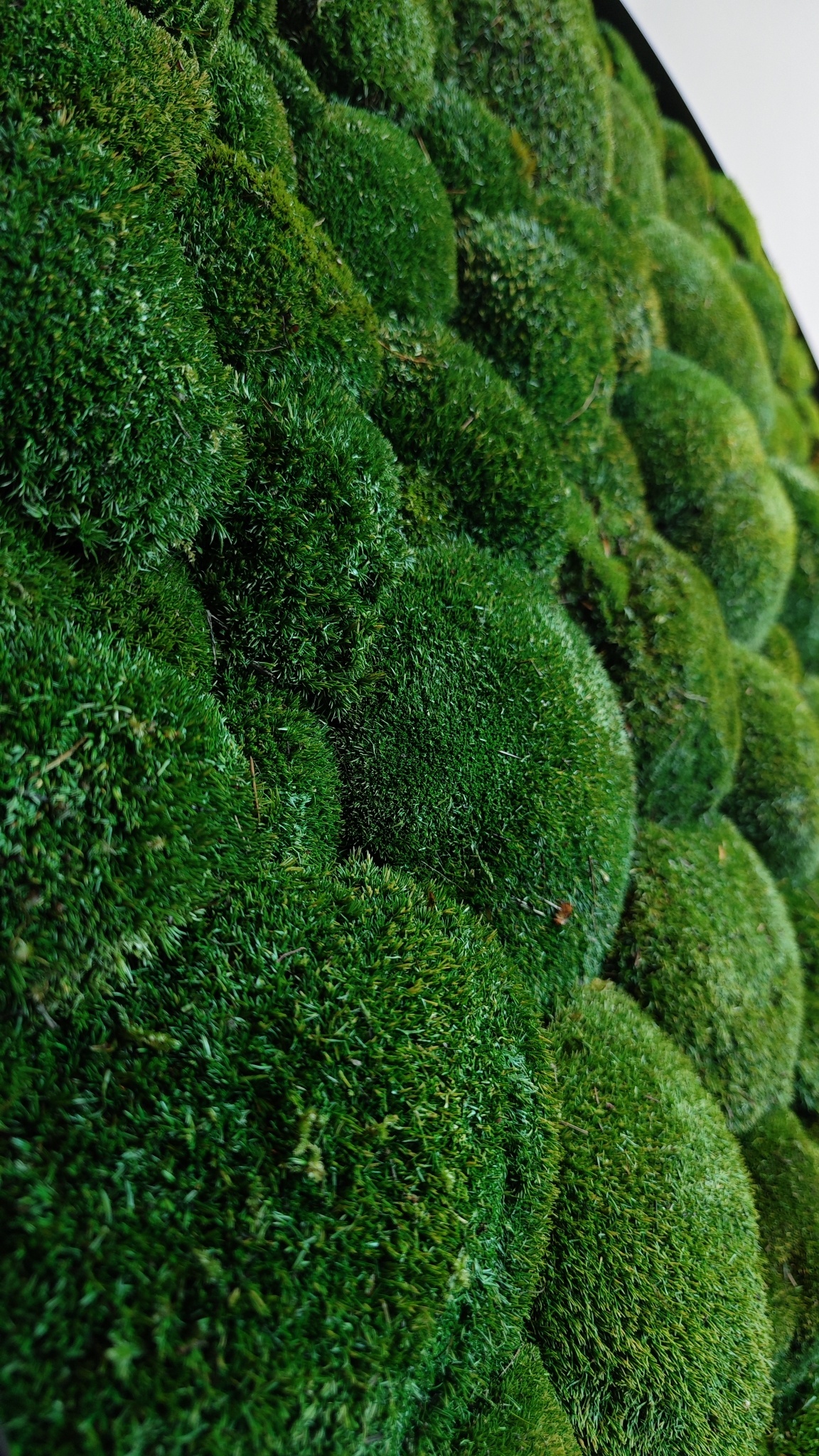 Mosstijl Bulbs bestaat voor 100% uit bolmos. De hoogtes zijn variërend van 30 tot 70 mm, waardoor het mosschilderij veel reliëf bevat. Het mosschilderij heeft hierdoor een natuurlijke, stijlvolle en exclusieve uitstraling. Bij deze mosstijl kan alleen gekozen worden voor een hoogwaardige stalen rand RAL 9005, zodat het bolmos mooi in de lijst valt.