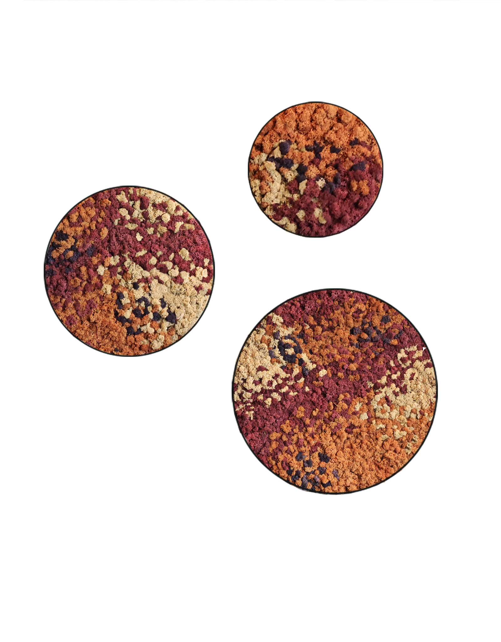 Op de afbeelding wordt de sfeer en het ontwerp van set 3 weergegeven. Aangezien het een natuurproduct is, is ieder mosschilderij uniek. Hierdoor kan de opmaak van de aangeschafte moscirkel afwijken van de geselecteerde foto. Mocht u een andere maat wensen? Neem contact met ons op via [email protected].