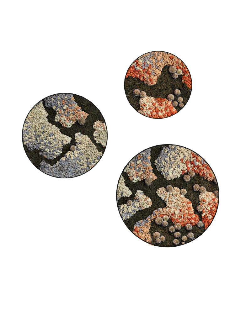 Moscirkel set Lavi is een fleurige set van 3 moscirkels met lichte, vrolijke en aardse tinten voor een speelse uitstraling. De diepe groentint van platmos in de kleur Pine vormt een natuurlijke basis, terwijl het zachte rendiermos in de levendige kleuren Danae, Persici, Naturalis en Glaciem zorgen voor een speels en fleurig kleurenspel. De subtiele distelaccenten voegen extra diepte en structuur toe, waardoor er een natuurlijk geheel ontstaat met veel hoogteverschillen. Deze set brengt warmte en sfeer in elke ruimte!