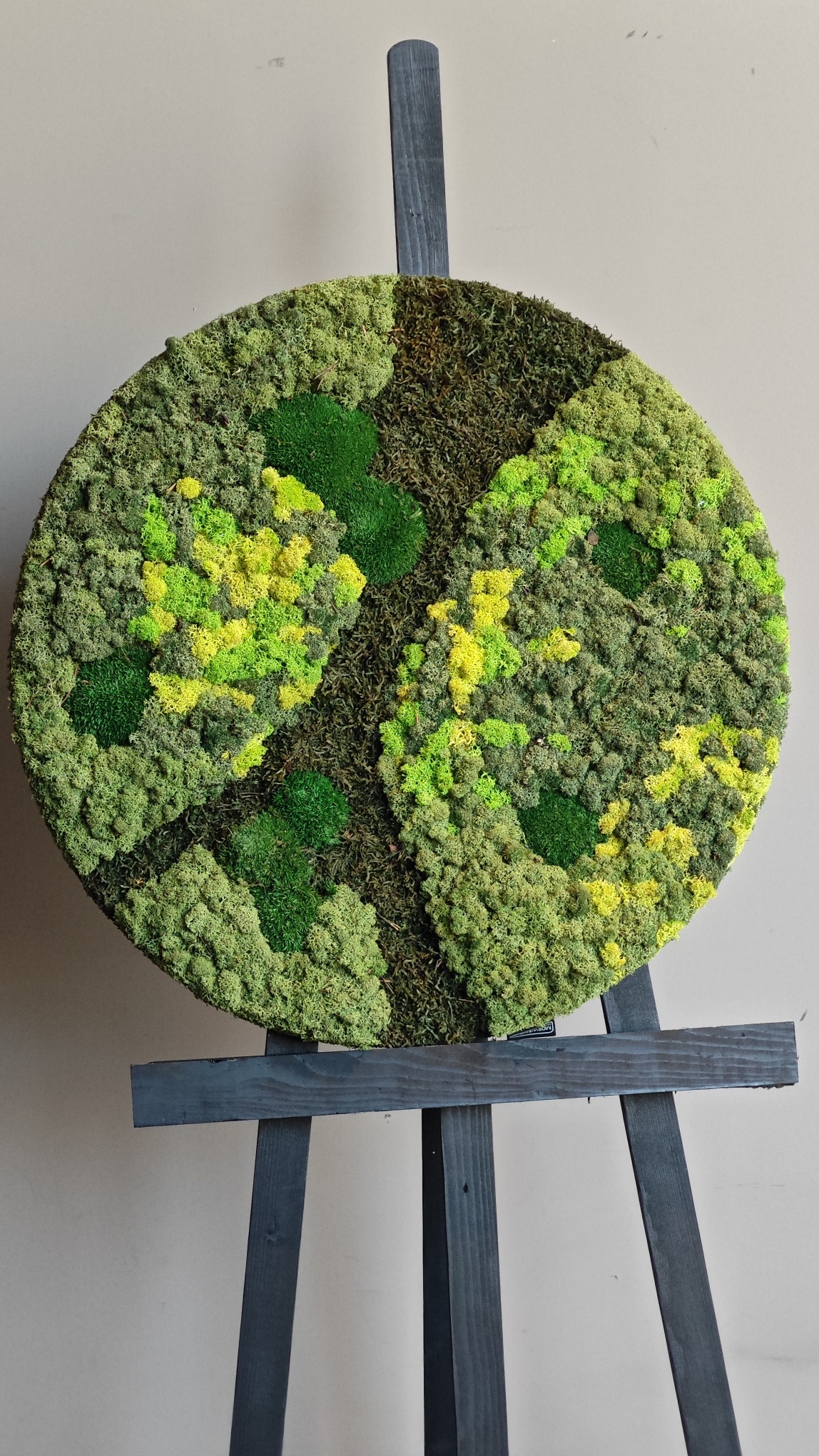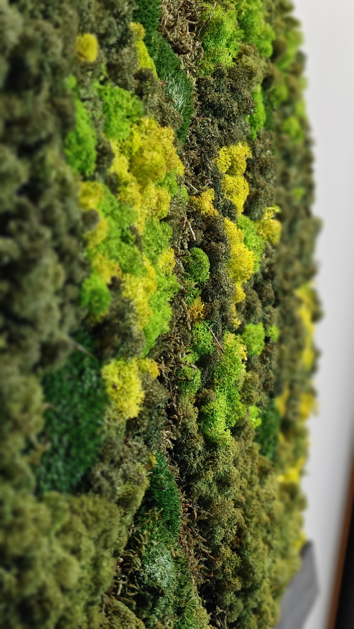 De moscirkels zorgen voor een unieke groene sfeer, wat uitermate geschikt is om toe te passen in (leef)keukens/ontvangstruimtes/kantoorruimtes/verblijfsruimtes of boven de bank bij u thuis.