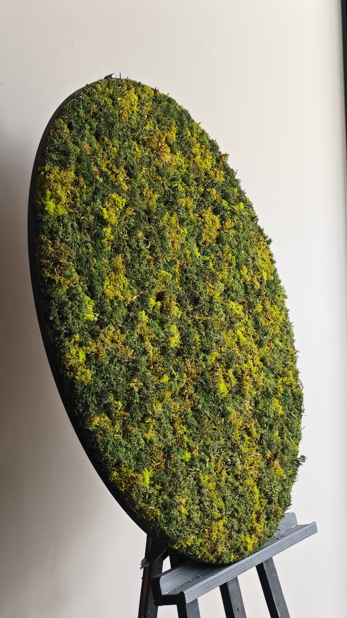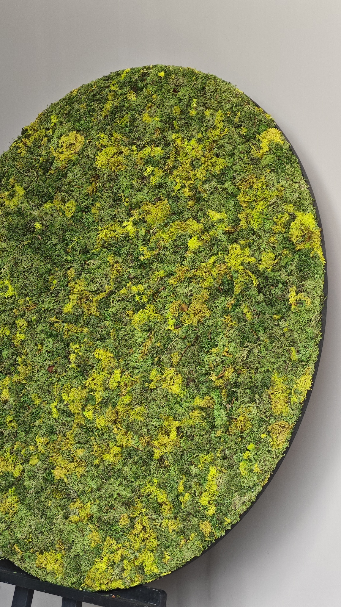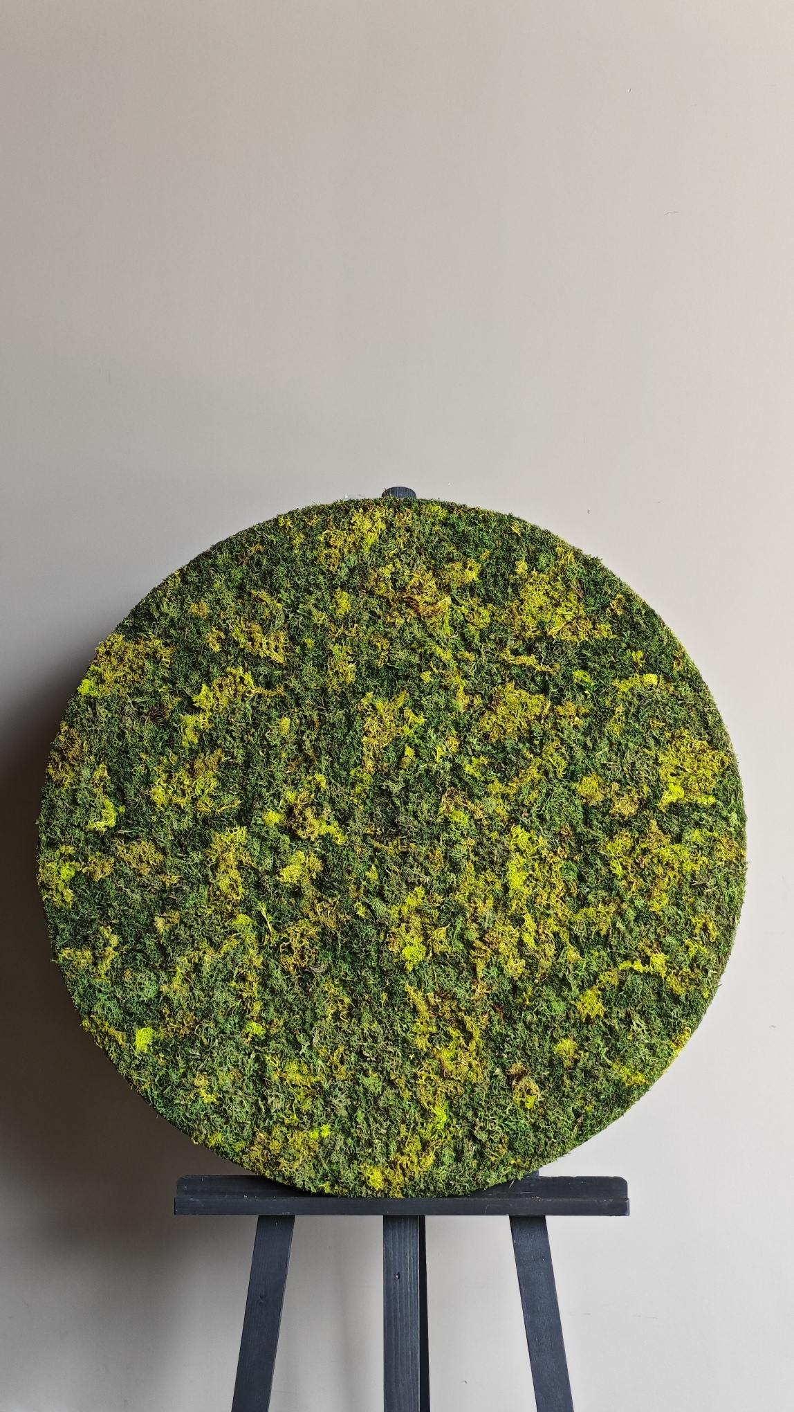 De moscirkels zorgen voor een unieke groene sfeer, wat uitermate geschikt is om toe te passen in (leef)keukens/ontvangstruimtes/kantoorruimtes/verblijfsruimtes of boven de bank bij u thuis.