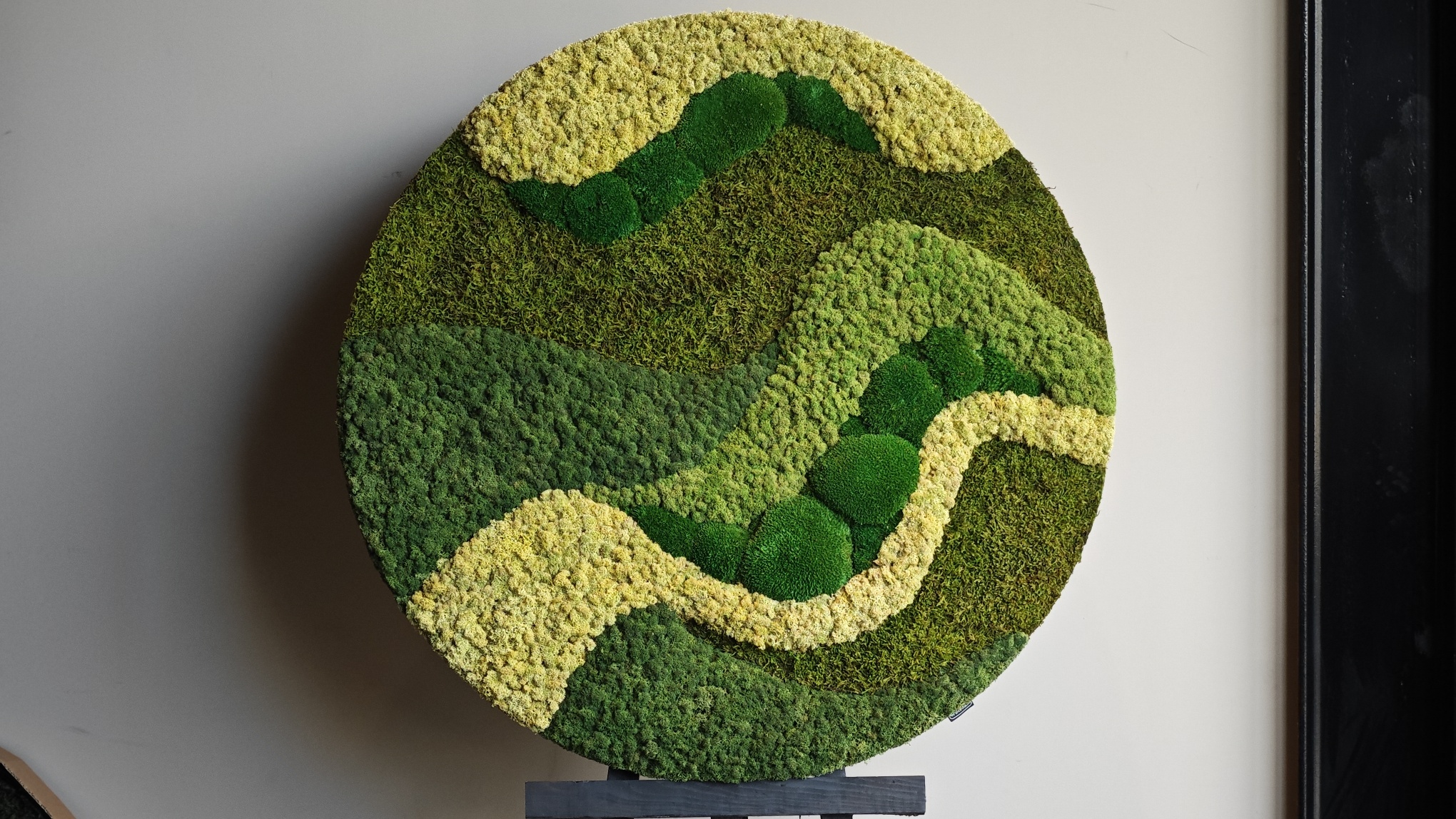 De moscirkels zorgen voor een unieke groene sfeer, wat uitermate geschikt is om toe te passen in (leef)keukens/ontvangstruimtes/kantoorruimtes/verblijfsruimtes of boven de bank bij u thuis.