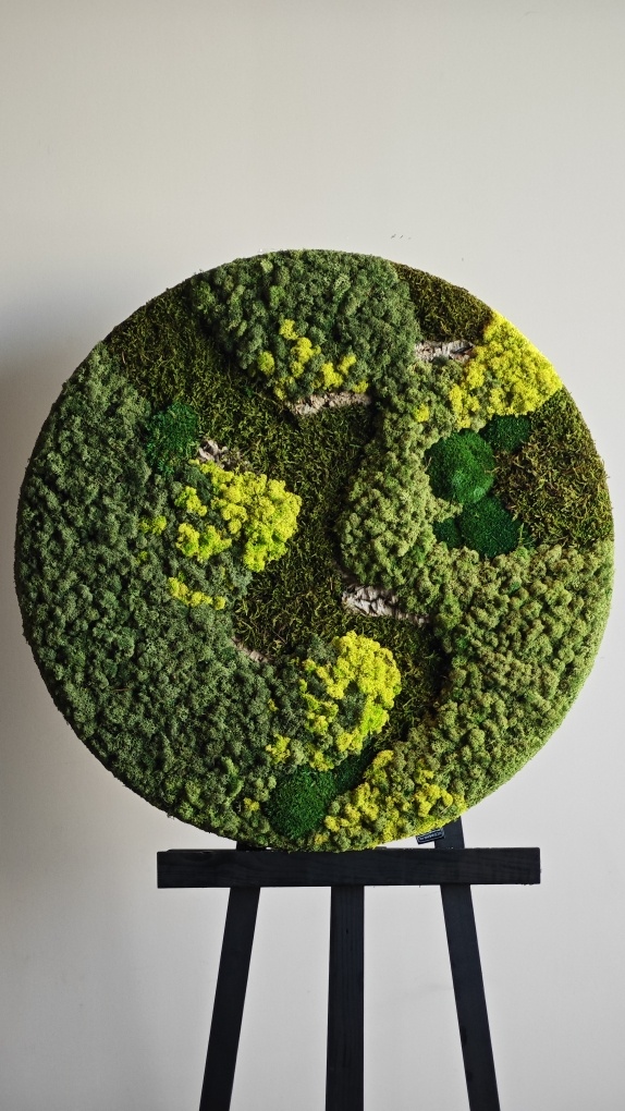De moscirkels zorgen voor een unieke groene sfeer, wat uitermate geschikt is om toe te passen in (leef)keukens/ontvangstruimtes/kantoorruimtes/verblijfsruimtes of boven de bank bij u thuis.