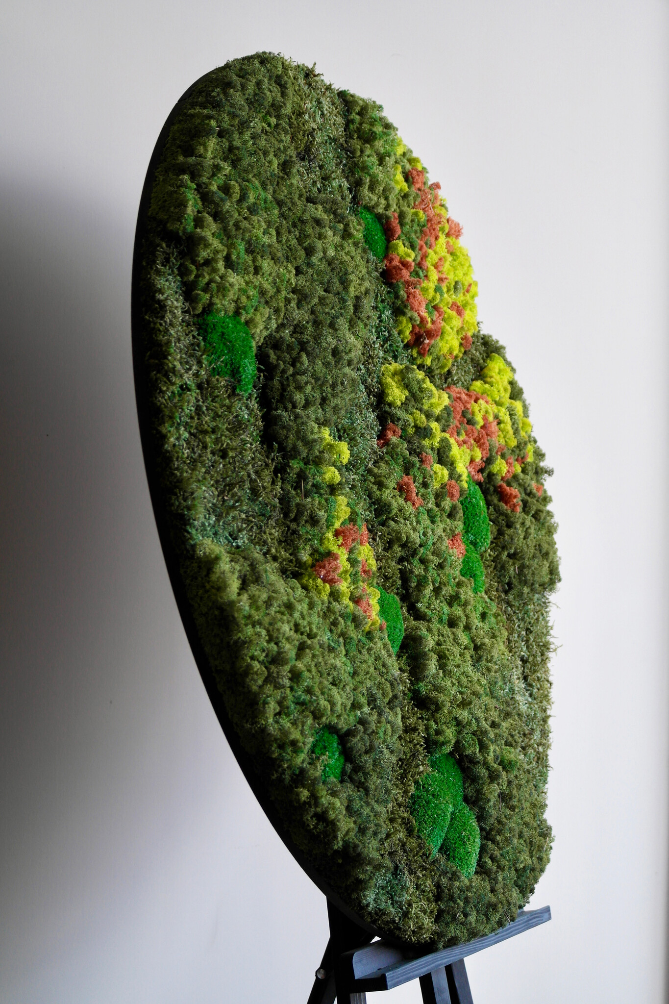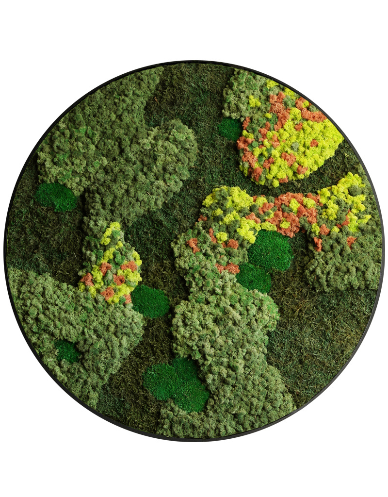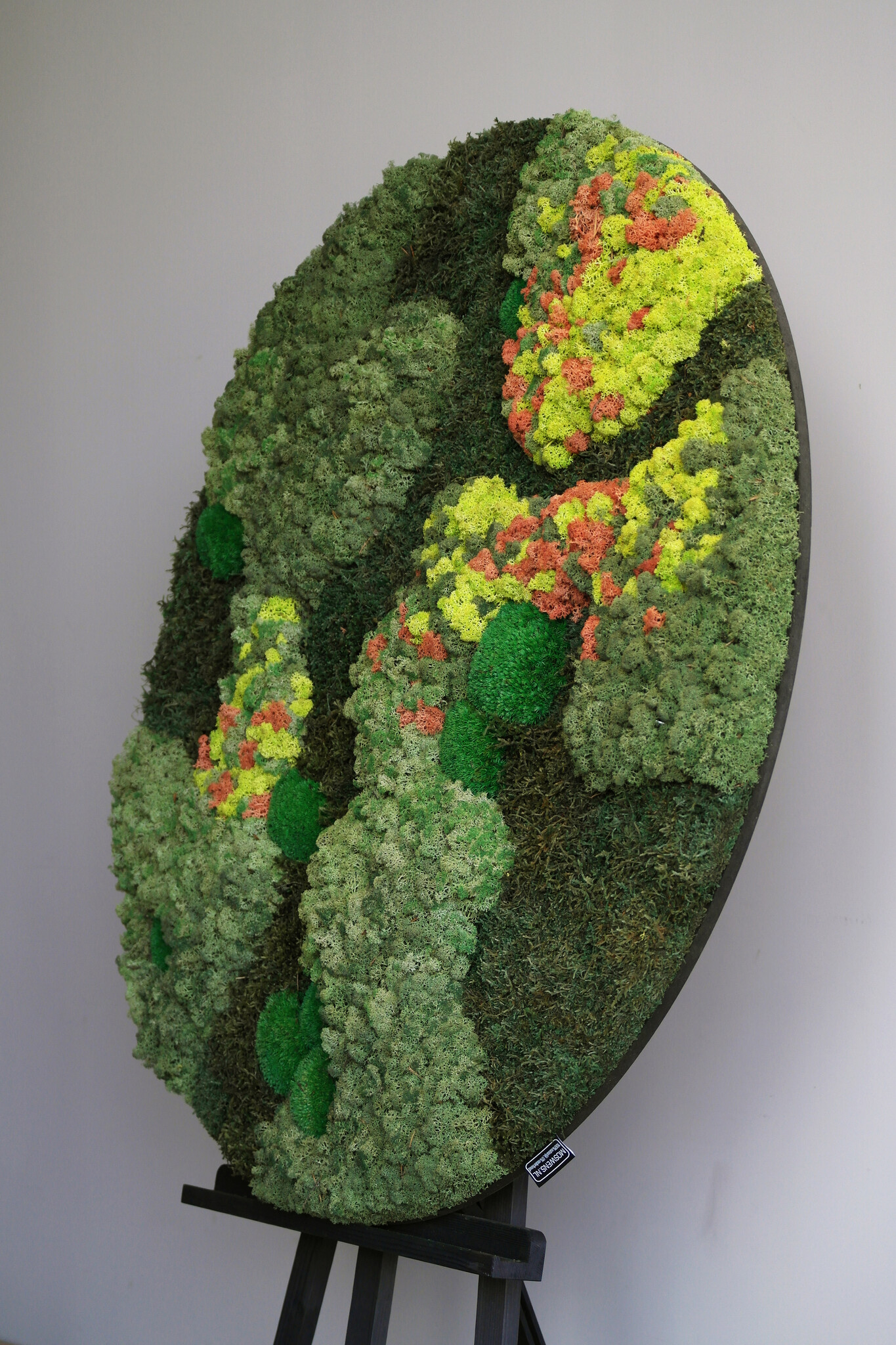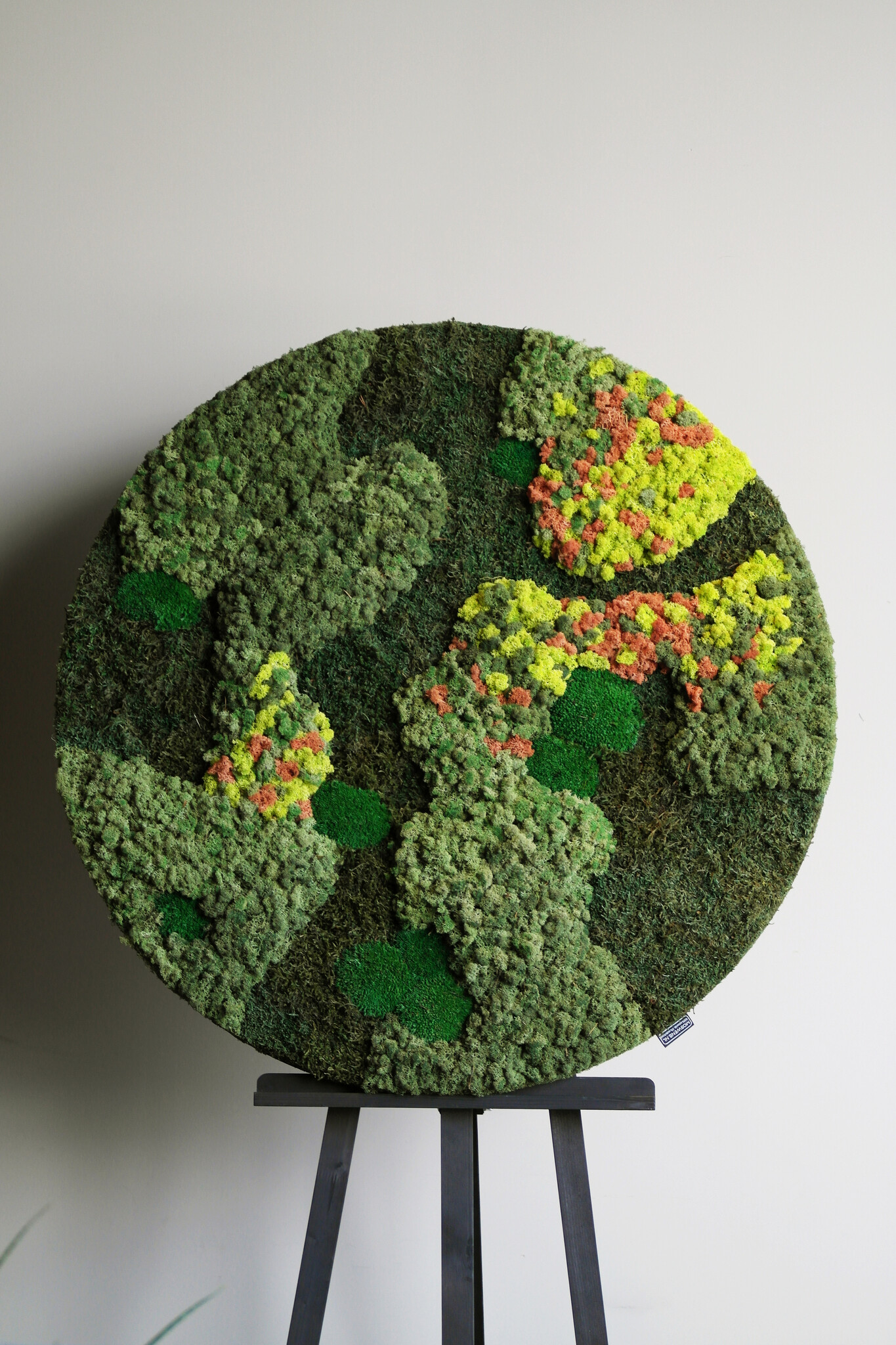 De moscirkels zorgen voor een unieke groene sfeer, wat uitermate geschikt is om toe te passen in (leef)keukens/ontvangstruimtes/kantoorruimtes/verblijfsruimtes of boven de bank bij u thuis.
