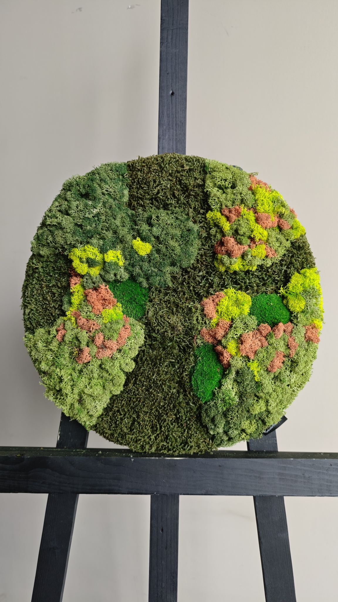 Op de afbeelding is het patroon zichtbaar van een moscirkel diameter 1.00. Aangezien het een natuurproduct is, is ieder mosschilderij uniek. Hierdoor kan de opmaak van de aangeschafte moscirkel afwijken van de geselecteerde foto. Mocht u een andere maat wensen? Neem contact met ons op via [email protected].