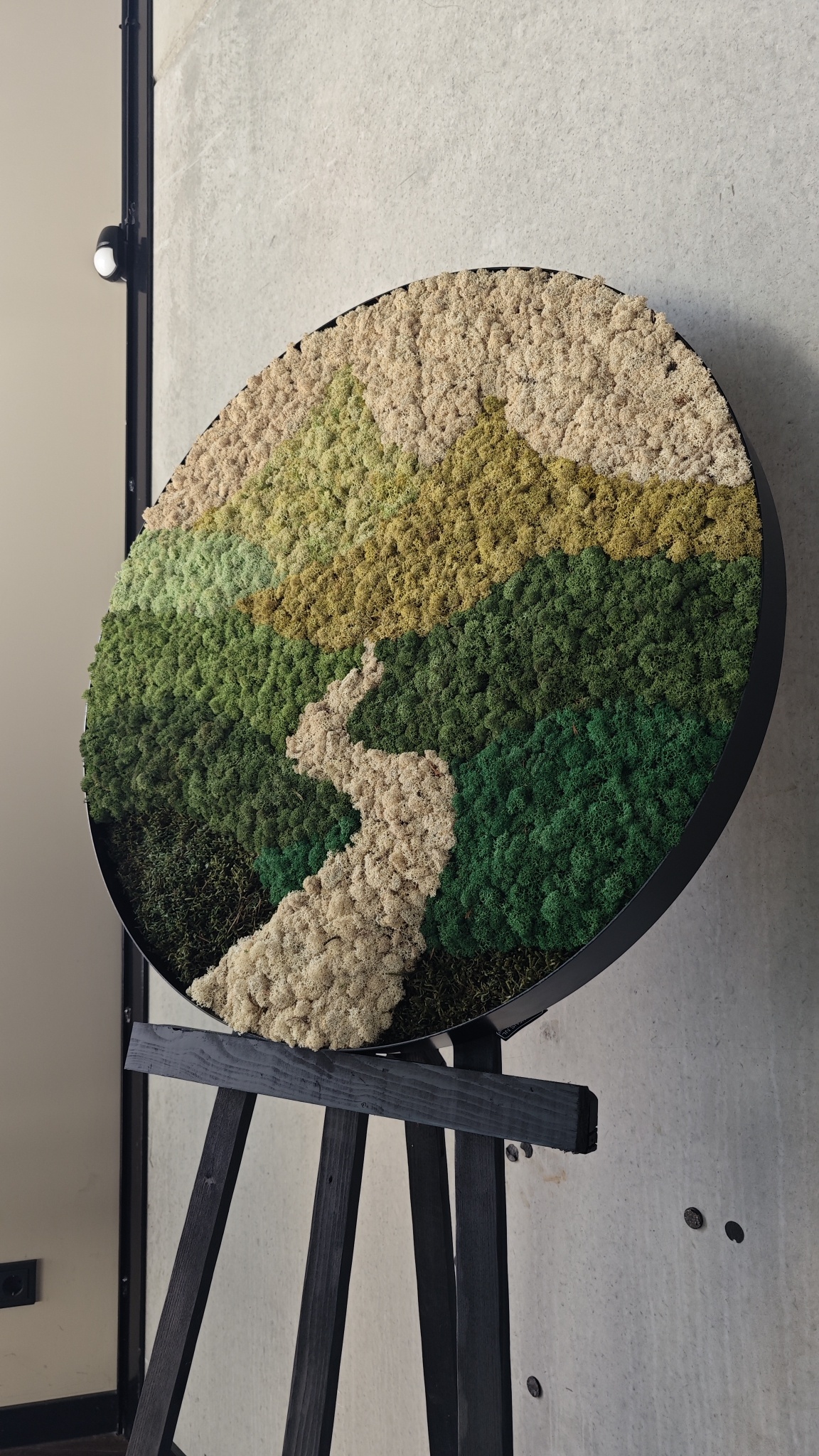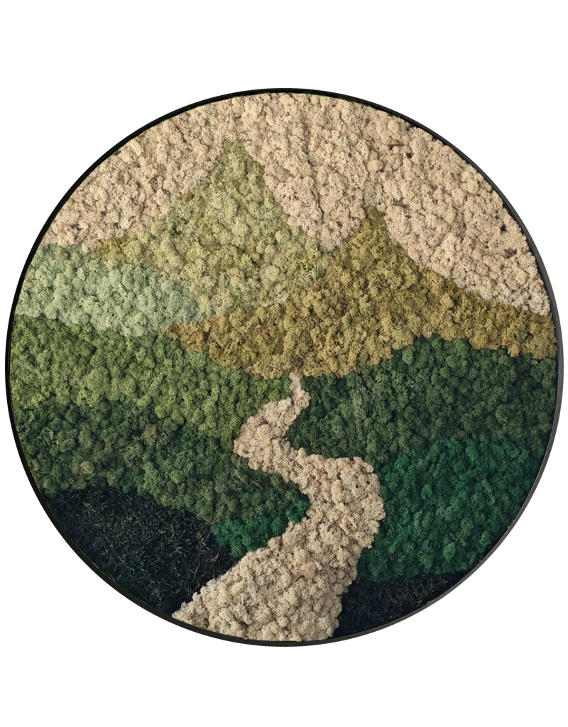 Valley is een mosschilderij met een krachtig en duidelijk beeld. De verschillende groentinten creëren een indrukwekkend diepte-effect, waardoor de bergen prachtig tot hun recht komen. De lichte kleur van de rivier vormt een fraai contrast met het groen en versterkt het landschap in het ontwerp. Dit mosschilderij is een echt statement en een eyecatcher in elke kamer. Dankzij het gebruik van mos heeft Valley een artistieke uitstraling, maar tegelijk ook een speelse en natuurlijke charme.