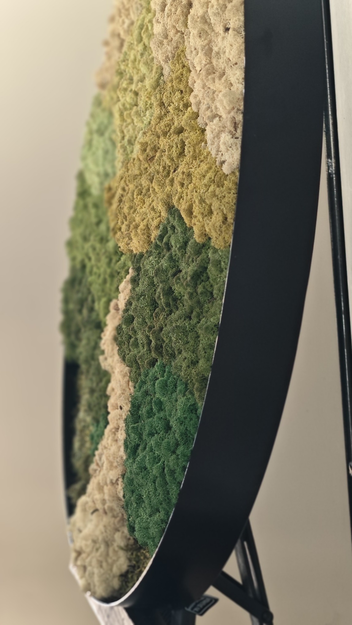 Op de afbeelding is het patroon zichtbaar van een moscirkel diameter 1.00. Aangezien het een natuurproduct is, is ieder mosschilderij uniek. Hierdoor kan de opmaak van de aangeschafte moscirkel afwijken van de geselecteerde foto. Mocht u een andere maat wensen? Neem contact met ons op via [email protected].