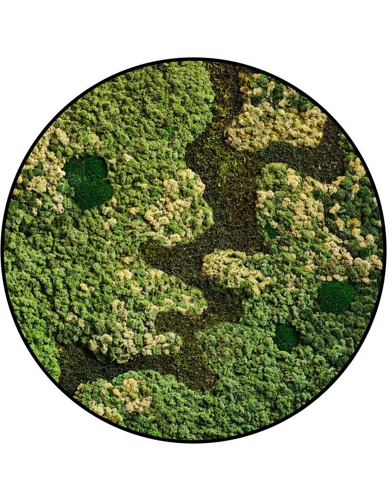 Moscirkel Vitalis brengt mos tot leven in de vorm van een pad dat door het midden van de cirkel loopt. De zachte mosstructuren en natuurlijke kleuren zorgen voor een warme uitstraling. Door een lichte kleur toe te voegen ontstaat er rust en balans in het geheel. Het ontwerp straalt eenvoud en diepgang uit. Perfect voor wie houdt van natuurlijke accenten met betekenis.