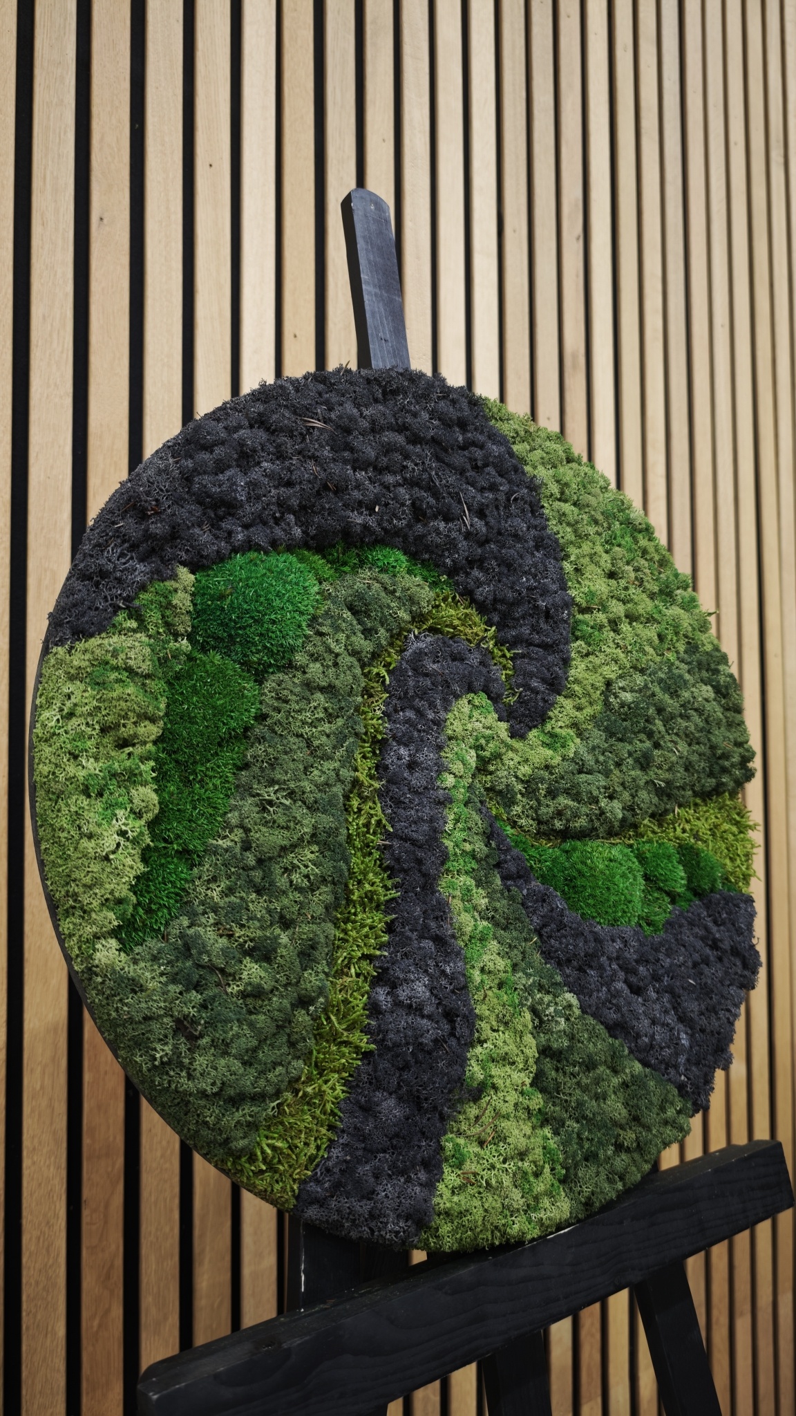Twist is verdraaid mooi! De verschillende mossoorten in verschillende tinten gaan als een kolk naar het middelpunt. We maken bij deze stijl gebruik van platmos, bolmos en rendiermos in strakke lijnen. Ook gebruiken we als accent kleur zwart mos voor een extra industriële look! Mocht u van een strak en industrieel design houden is dit een passende stijl voor u.