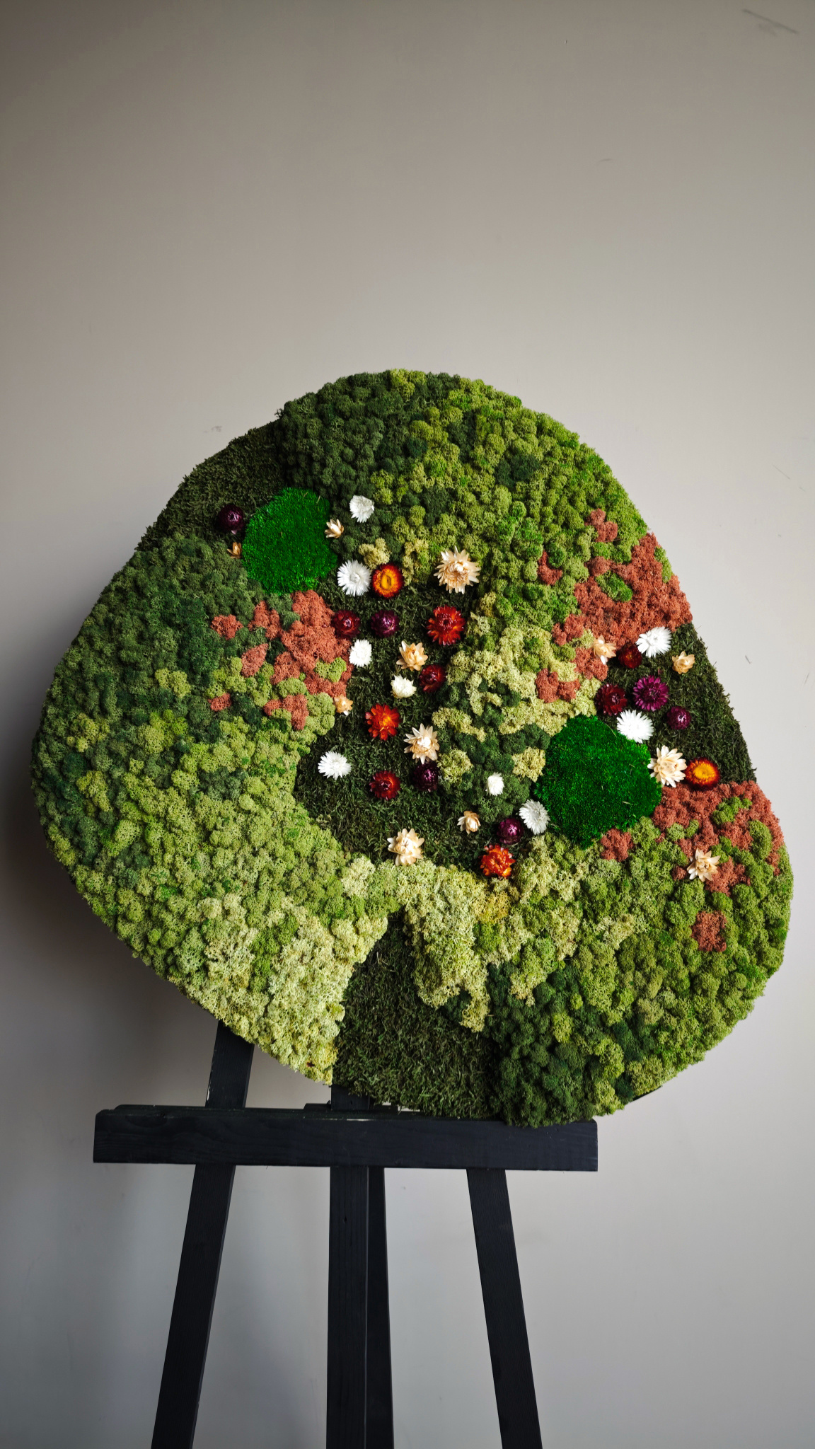 De afmetingen zijn gemeten vanaf het breedste punt. Op de afbeelding is het patroon zichtbaar van een mosschilderij in de afmeting 100 cm. Aangezien het een natuurproduct is, is ieder mosschilderij uniek. Hierdoor kan de opmaak van het aangeschafte mosschilderij afwijken van de geselecteerde foto. Mocht u een andere maat wensen? Neem contact met ons op via [email protected]