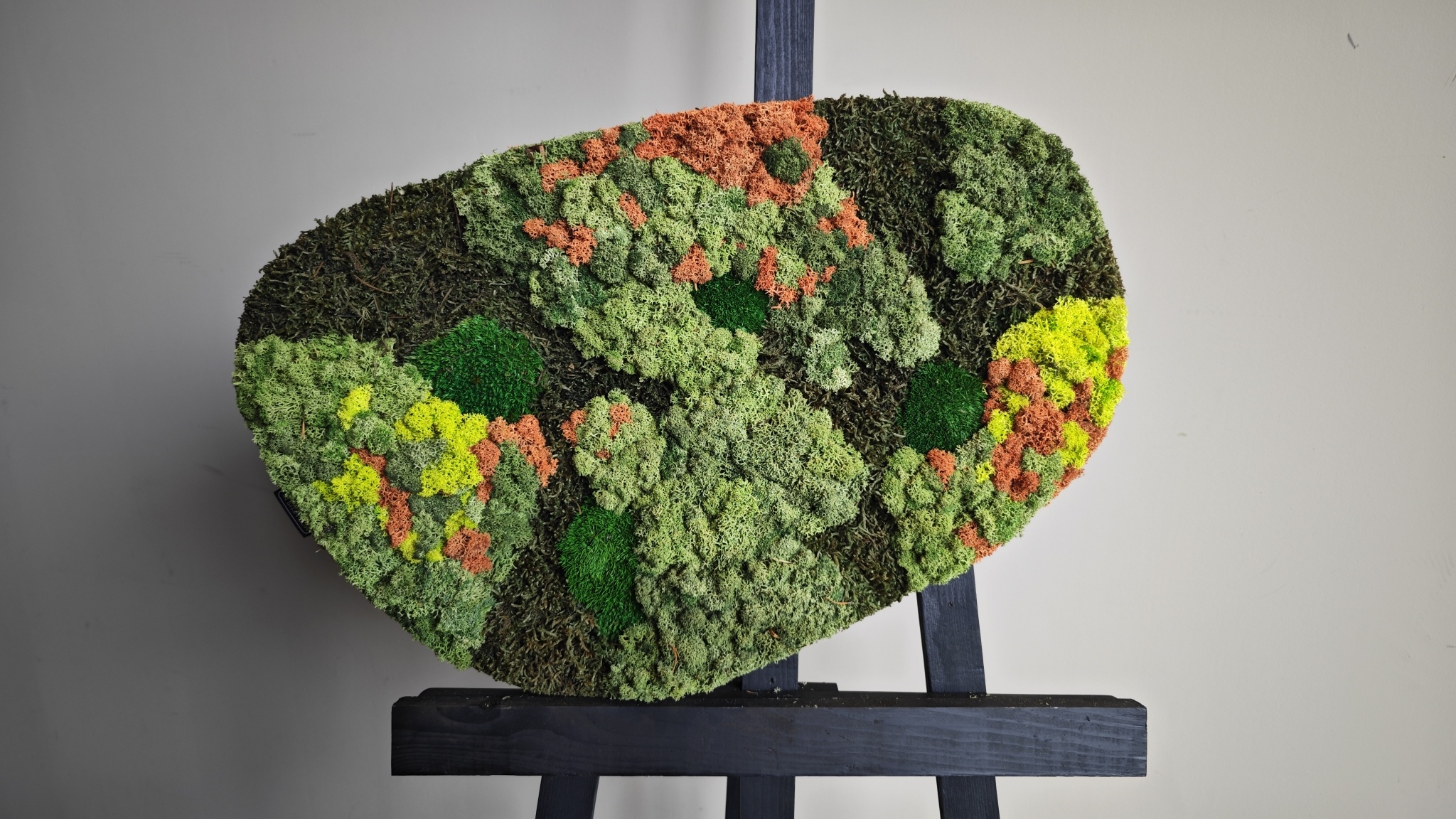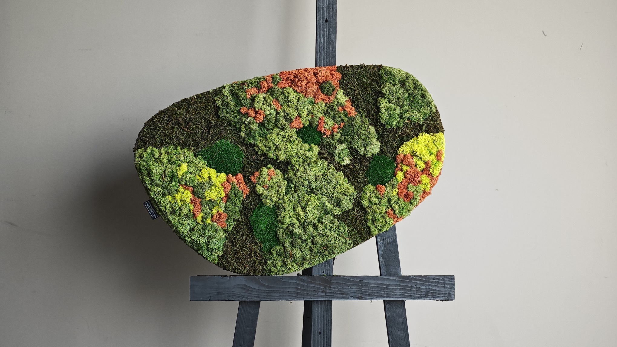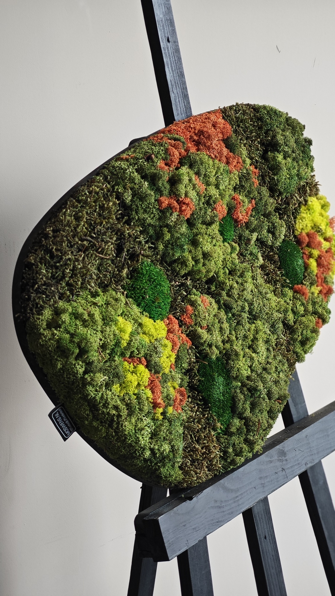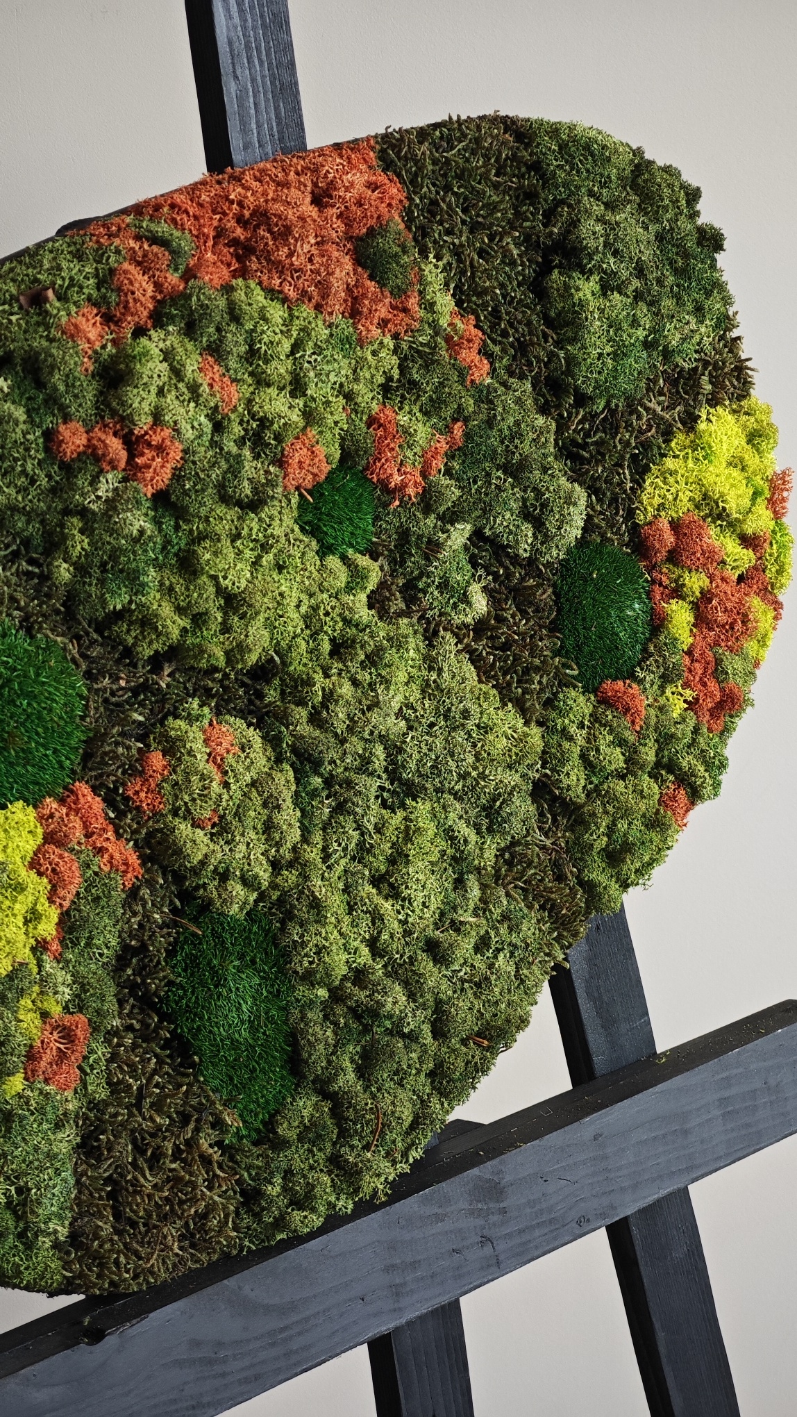 Mosschilderij Kaisa is een prachtig mosschilderij dat op een unieke wijze de natuur in huis brengt. Dit mosschilderij bestaat uit een mossenmix van platmos, bolmos en rendiermos. Door het gebruik van de twee levendige accentkleuren Persici-rood en de heldergroene kleur ontstaat er een levendig mosschilderij. Het diepe contrast in het mosschilderij wordt benadrukt door het donkere platmos. Perfect voor een vleugje natuur in elke ruimte!
