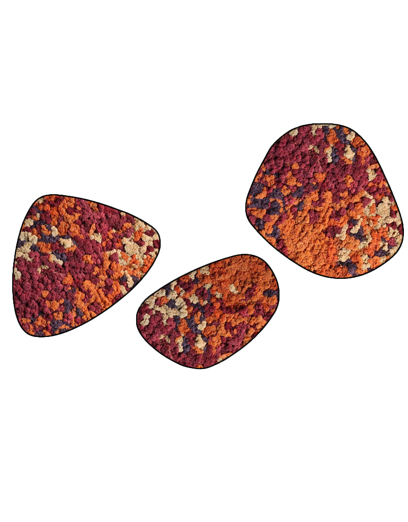 Juist het ontbreken van groen maakt Autana zo onderscheidend. De speelse contrasten tussen de warme tinten en de rijke texturen zorgen voor een dynamisch kunstwerk dat in elk interieur een bijzondere plek verdient.