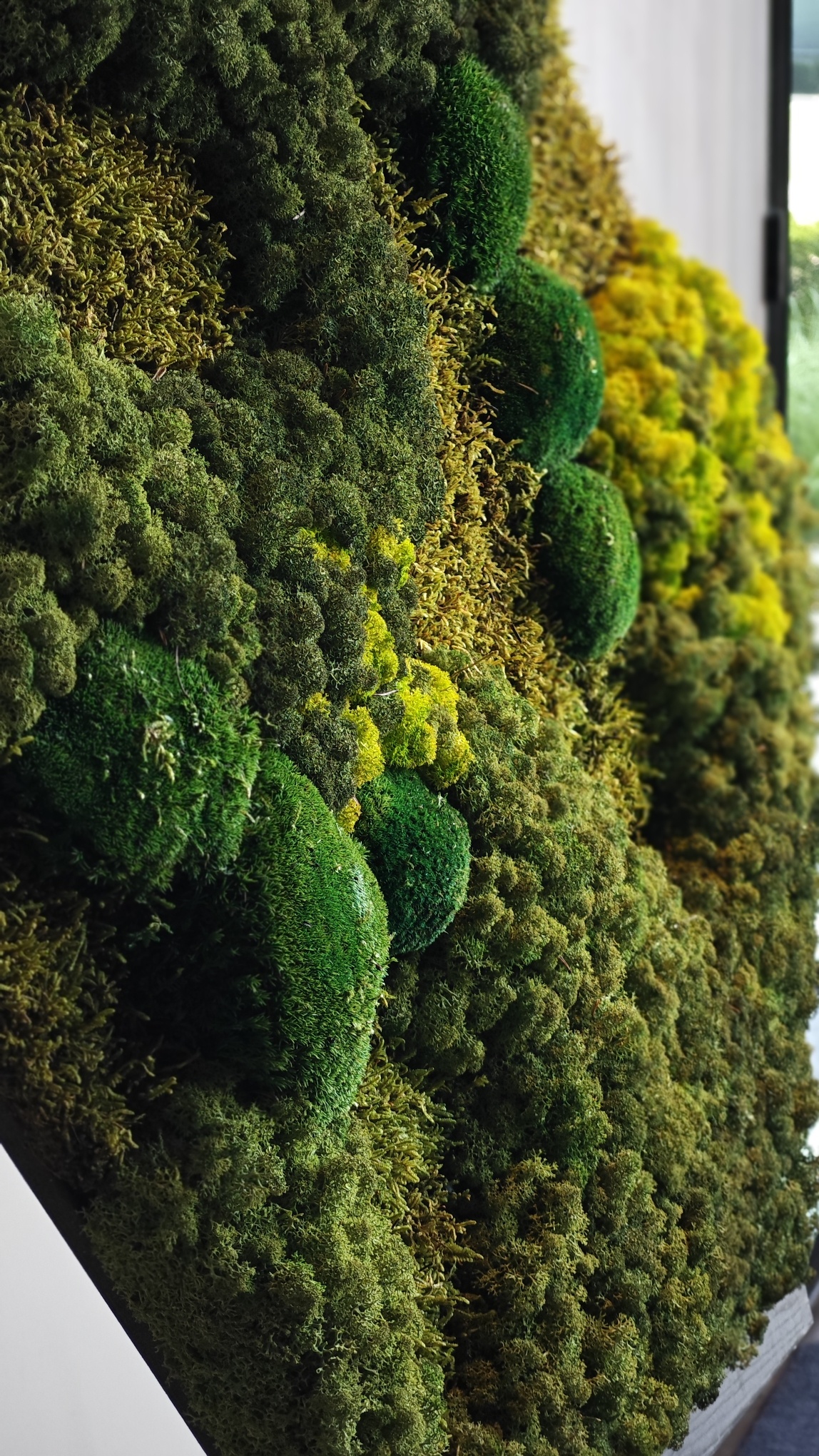 Onze mosschilderijen zorgen voor een unieke groene sfeer, wat uitermate geschikt is om toe te passen in (leef)keukens/ontvangstruimtes/kantoorruimtes/verblijfsruimtes of boven de bank bij u thuis.
