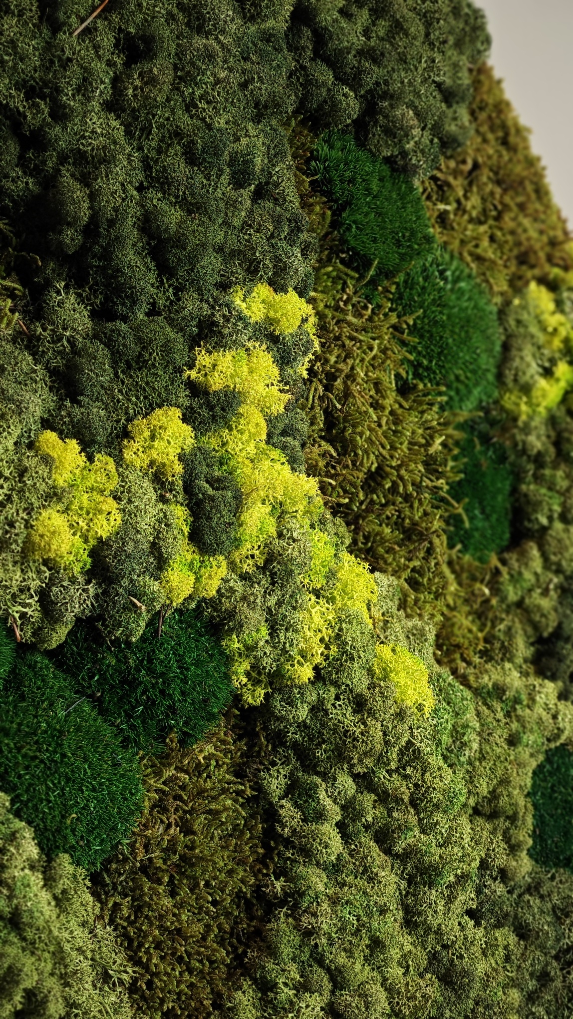 De meest verkochte mosstijl is de stijl Jellina. Dit komt door het natuurlijke reliëf tussen de verschillende mossen die we toepassen. Het mosschilderij heeft een spannende look omdat we enkele fellere mosplukken erin verwerken. Ook deze mosstijl bevat het Rendiermos, platmos en bolmos waardoor er een natuurlijk hoogteverschil ontstaat.