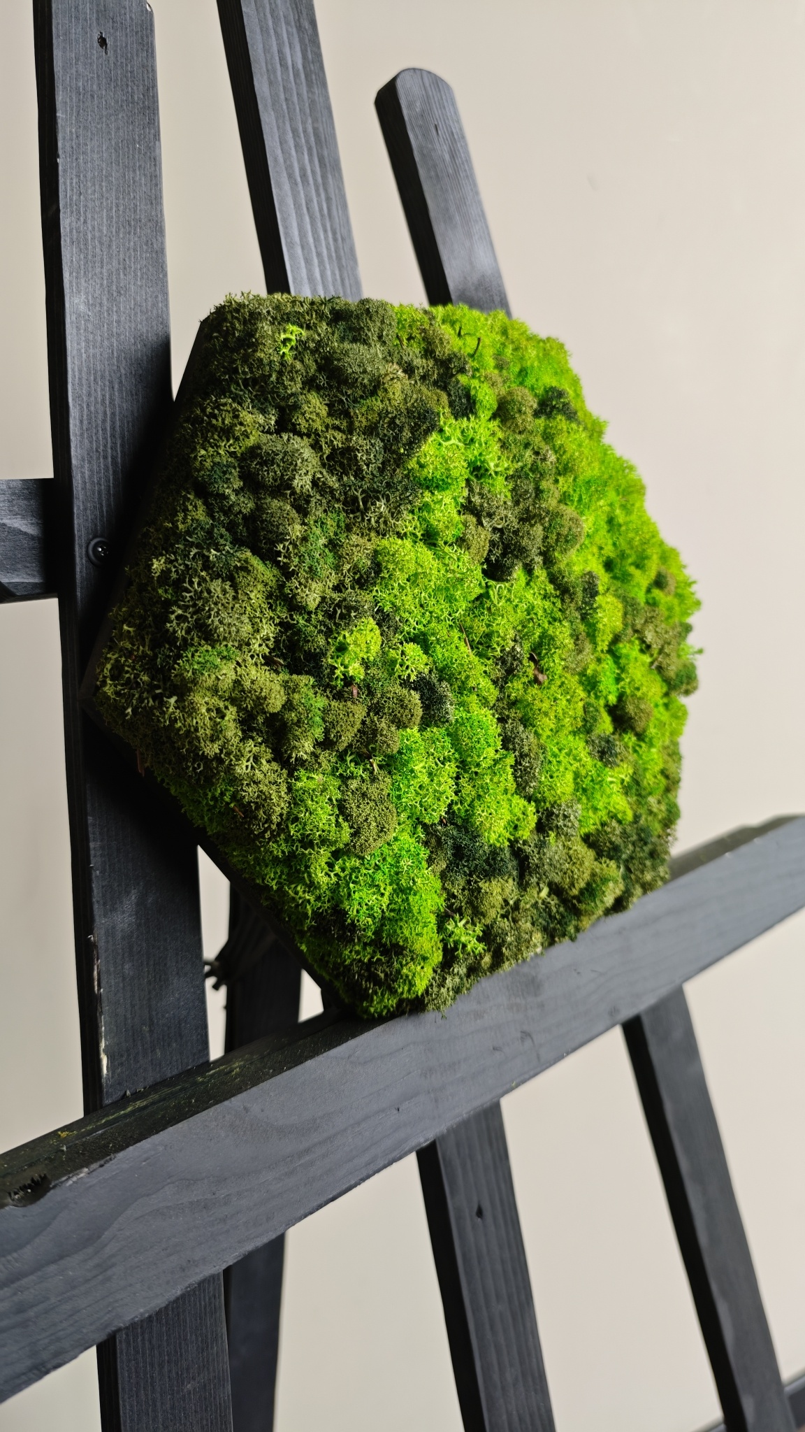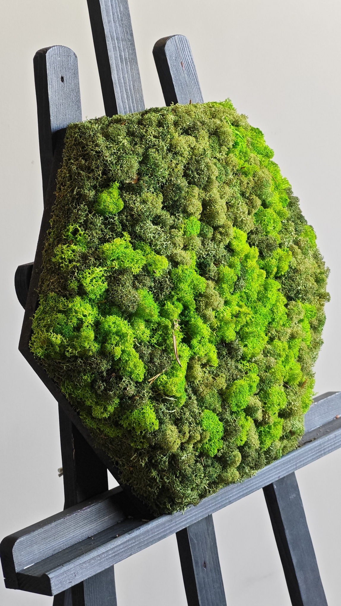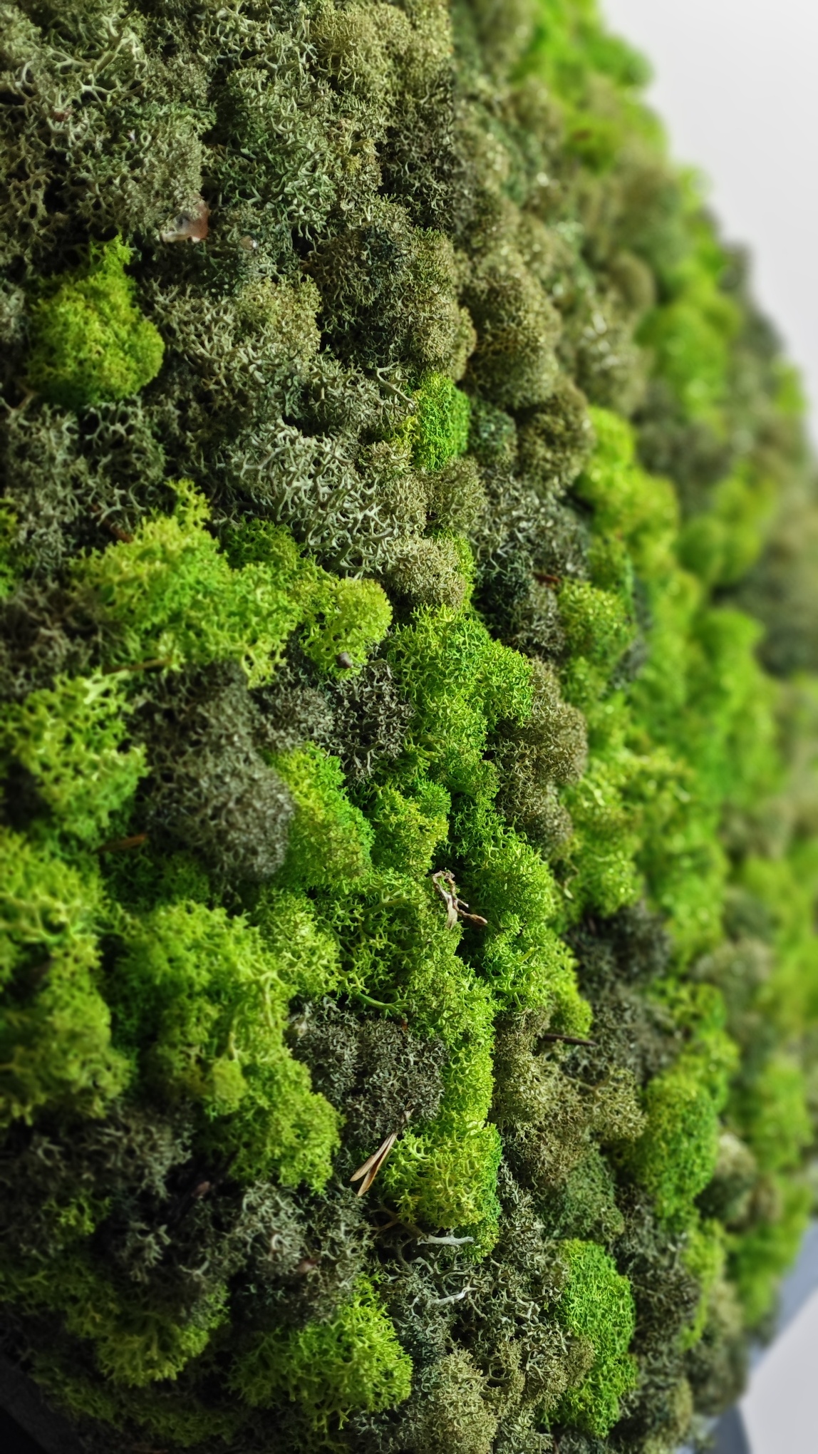 Mosschilderij Loran is samengesteld uit een verfijnde mix van drie tinten rendiermos: Een natuurlijke groene kleur, een donkergroene kleur en een frisse felgroene kleur. Deze combinatie zorgt voor een levendig groen mosschilderij dat elke ruimte frisheid en een vrolijke touch geeft.
