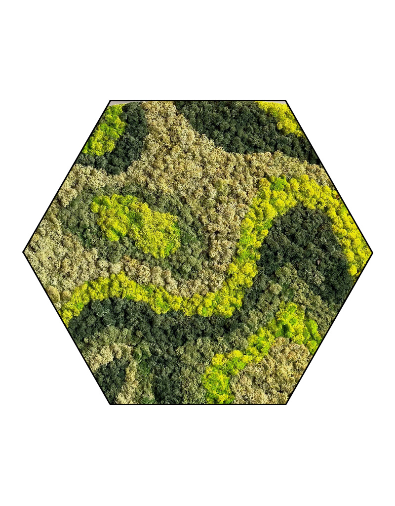 Op de afbeelding is het patroon zichtbaar van een hexagon in de afmeting 100 cm. Aangezien het een natuurproduct is, is ieder mosschilderij uniek. Hierdoor kan de opmaak van het aangeschafte mosschilderij afwijken van de geselecteerde foto. Mocht u een andere maat wensen? Neem contact met ons op via [email protected]