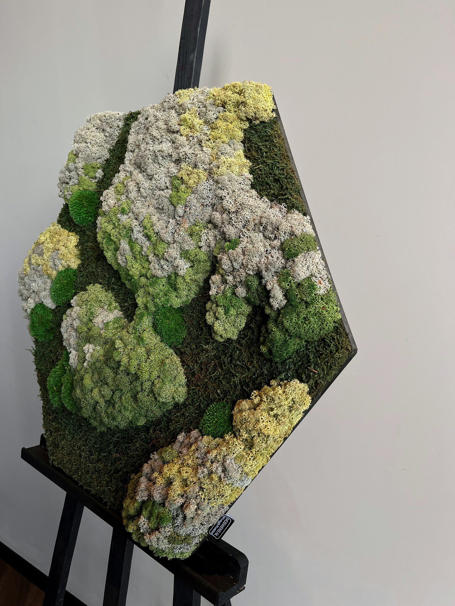 Onze mosschilderijen zorgen voor een unieke groene sfeer, wat uitermate geschikt is om toe te passen in (leef)keukens/ontvangstruimtes/kantoorruimtes/verblijfsruimtes of boven de bank bij u thuis.
