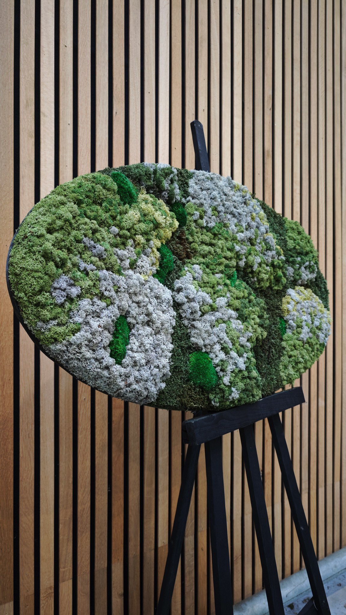 Deze mosovaal stijl Saar is speciaal ontworpen wat aansluit bij het industriële interieur van influencer @huisvansaar. De reacties van alle volgers waren zo enthousiast wat ons heeft doen besluiten deze mosovaal op de webshop te plaatsen. Deze prachtige ovaal is voorzien van grijstinten in combinatie met groentinten. Een sjieke kleuren contrast wat perfect match bij iedere interieur stijl. Houdt u van rustige stijl, maar er mag toch wat verschillende natuurtinten in terug komen? Deze is deze mosovaal de juiste keuze!