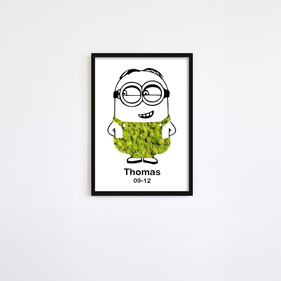 En het mooiste? Ze zijn verrassend betaalbaar. Of je nu een opvallend schilderij zoekt voor je woonkamer of een origineel cadeau, er is altijd een mosportret die in de smaak valt. Verkrijgbaar in verschillende afbeeldingen, lijstformaten en invulling van de moskleuren! Zodat je eindeloos kunt combineren. Een vrolijke keuze voor een kinderkamer, speelhoek, speelgoedwinkel of als leuk cadeau voor fans van de Minions. Dit portret voegt een speelse en humoristische sfeer toe aan elke ruimte.