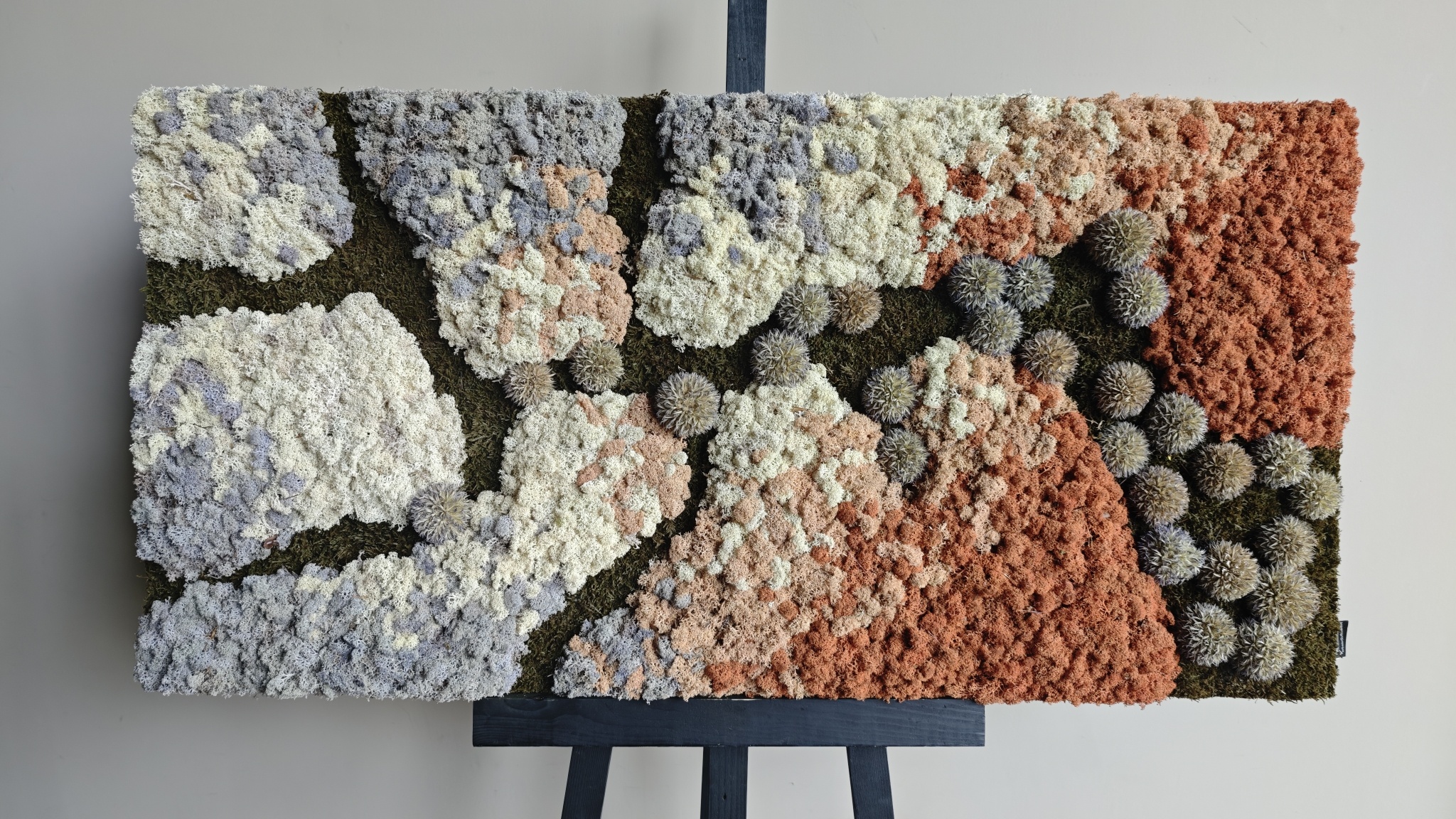 Mosschilderij Lavi is een fleurig kunstwerk met lichte, vrolijke en aardse tinten voor een speelse uitstraling. De diepe groentint van platmos in de kleur Pine vormt een natuurlijke basis, terwijl het zachte rendiermos in de levendige kleuren Danae, Persici, Naturalis en Glaciem zorgen voor een speels en fleurig kleurenspel. De subtiele distelaccenten voegen extra diepte en structuur toe, waardoor er een natuurlijk geheel ontstaat met veel hoogteverschillen. Dit unieke schilderij brengt warmte en sfeer in elke ruimte!