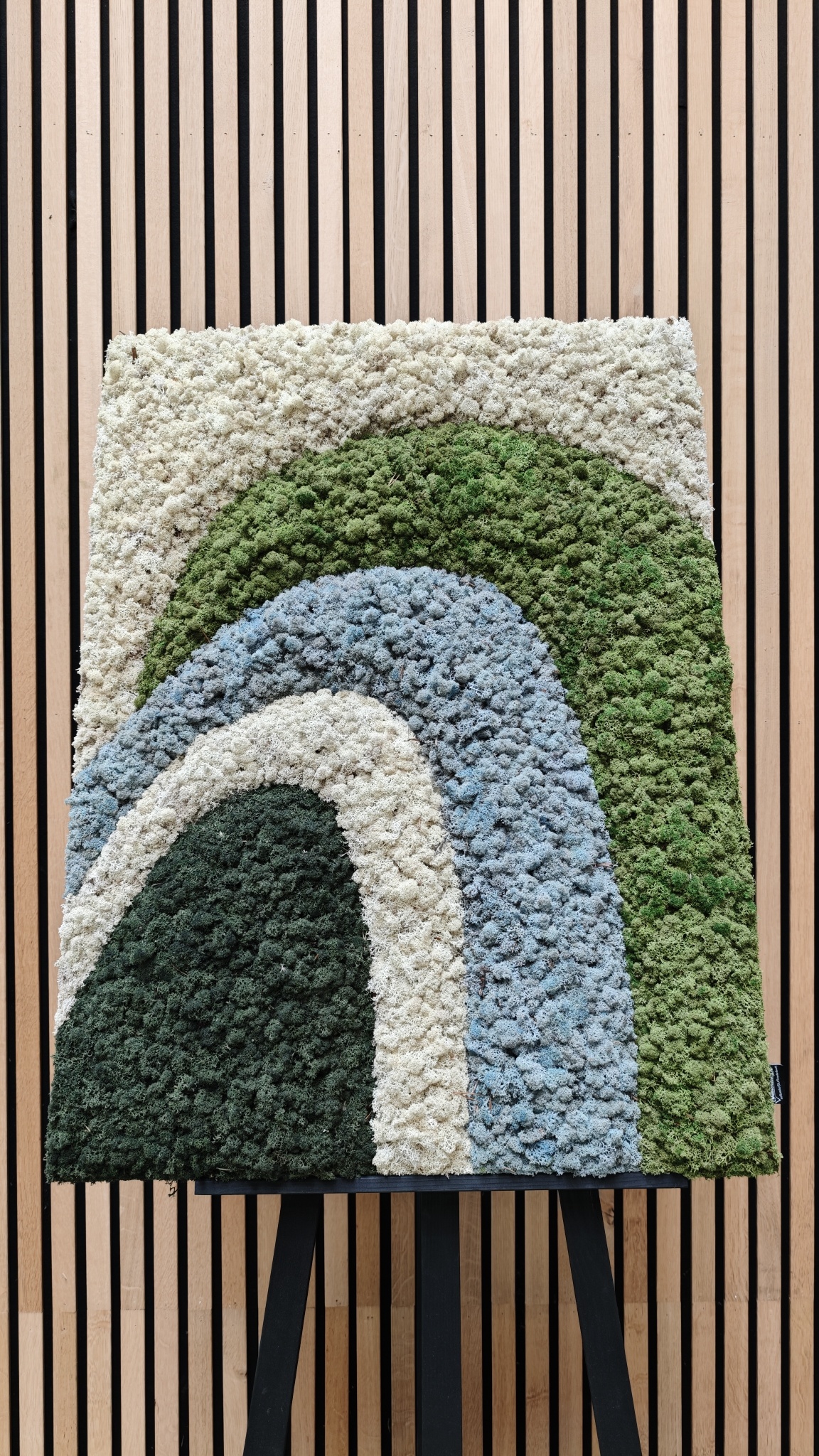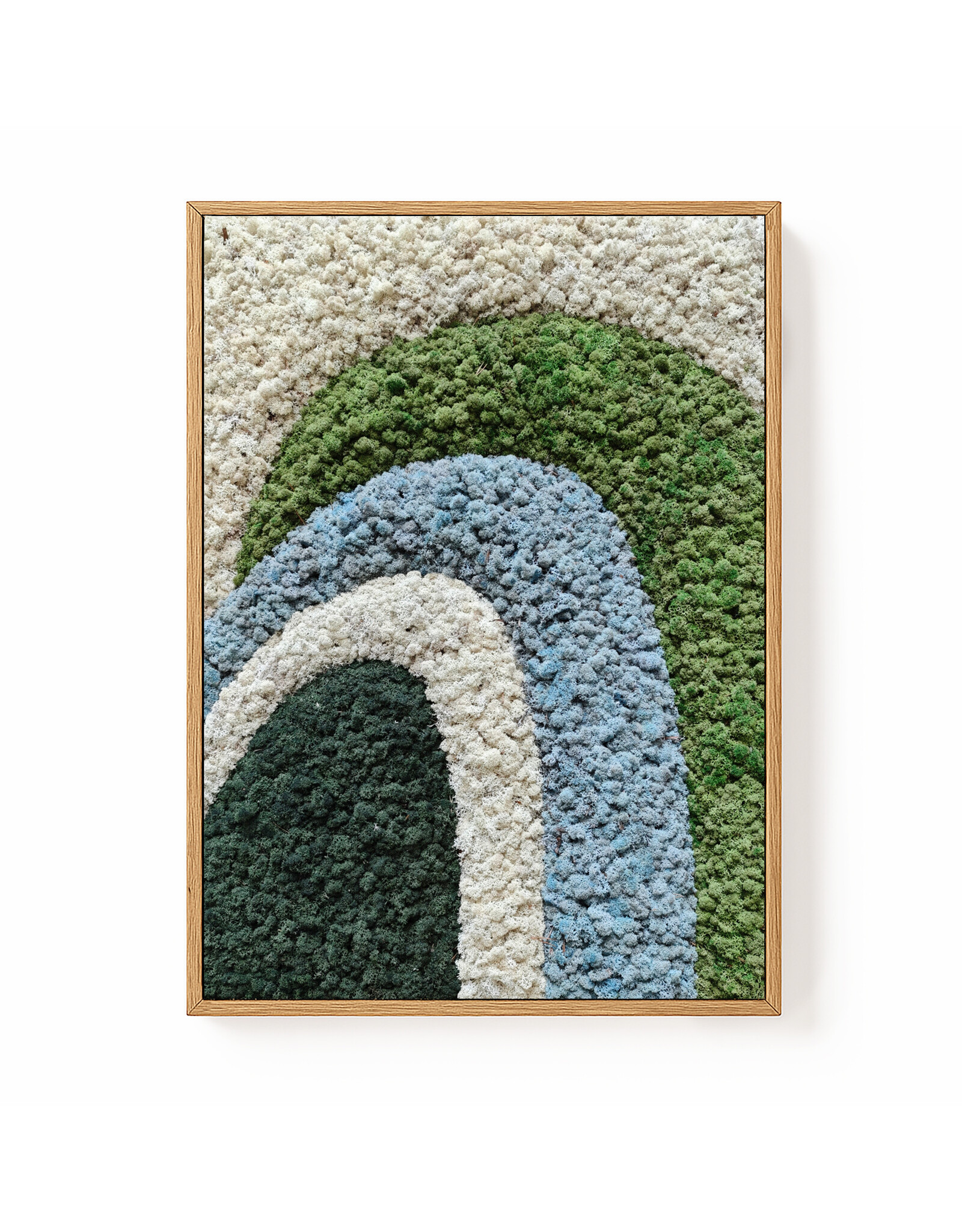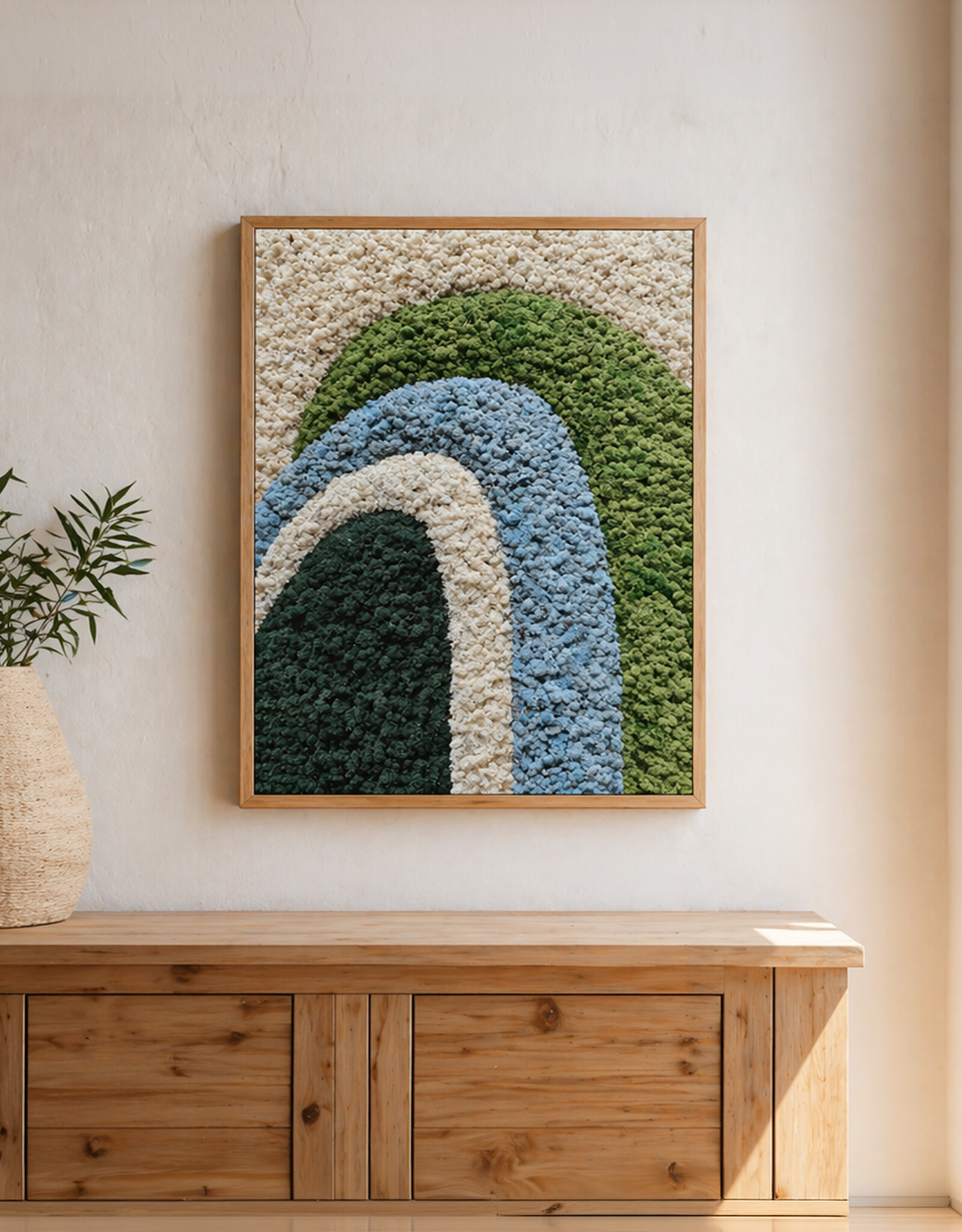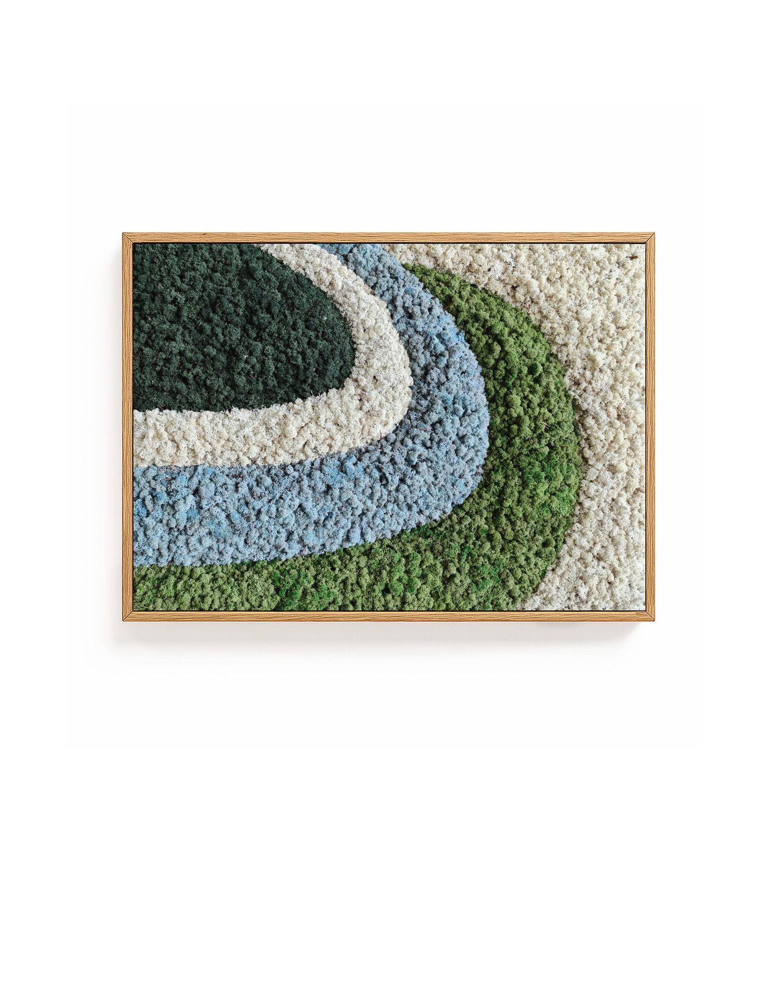 Ervaar de kracht van Japandi design, gemaakt van echt mos in een rustgevende compositie. Elk mosschilderij wordt met de hand gemaakt, is volledig onderhoudsvrij en direct klaar om stijlvol op te hangen. De strakke lijnen worden afgerond naar een andere moskleur, waardoor er een prachtig 3D-effect ontstaat dat diepte en karakter aan je interieur geeft.