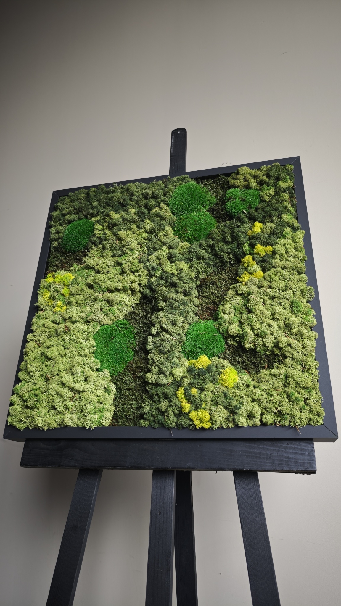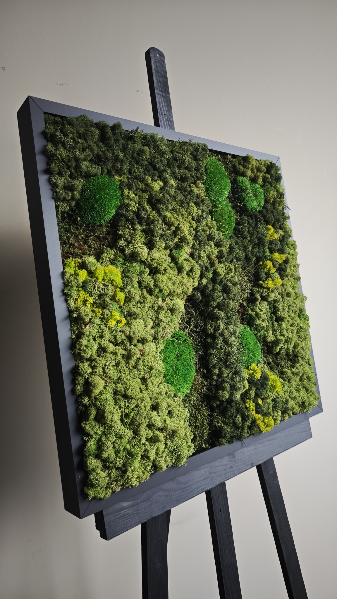 Mosschilderij Evey is een stijlvolle blikvanger voor elk interieur. Dit mosschilderij bevat groene, natuurlijke tinten mos met een sprankelende felle accentkleur, waardoor het mosschilderij een frisse en levendige uitstraling krijgt. Wanneer u dit mosschilderij toepast in uw leef- of werkruimte, wordt er een natuurlijke en rustige sfeer gecreëerd.