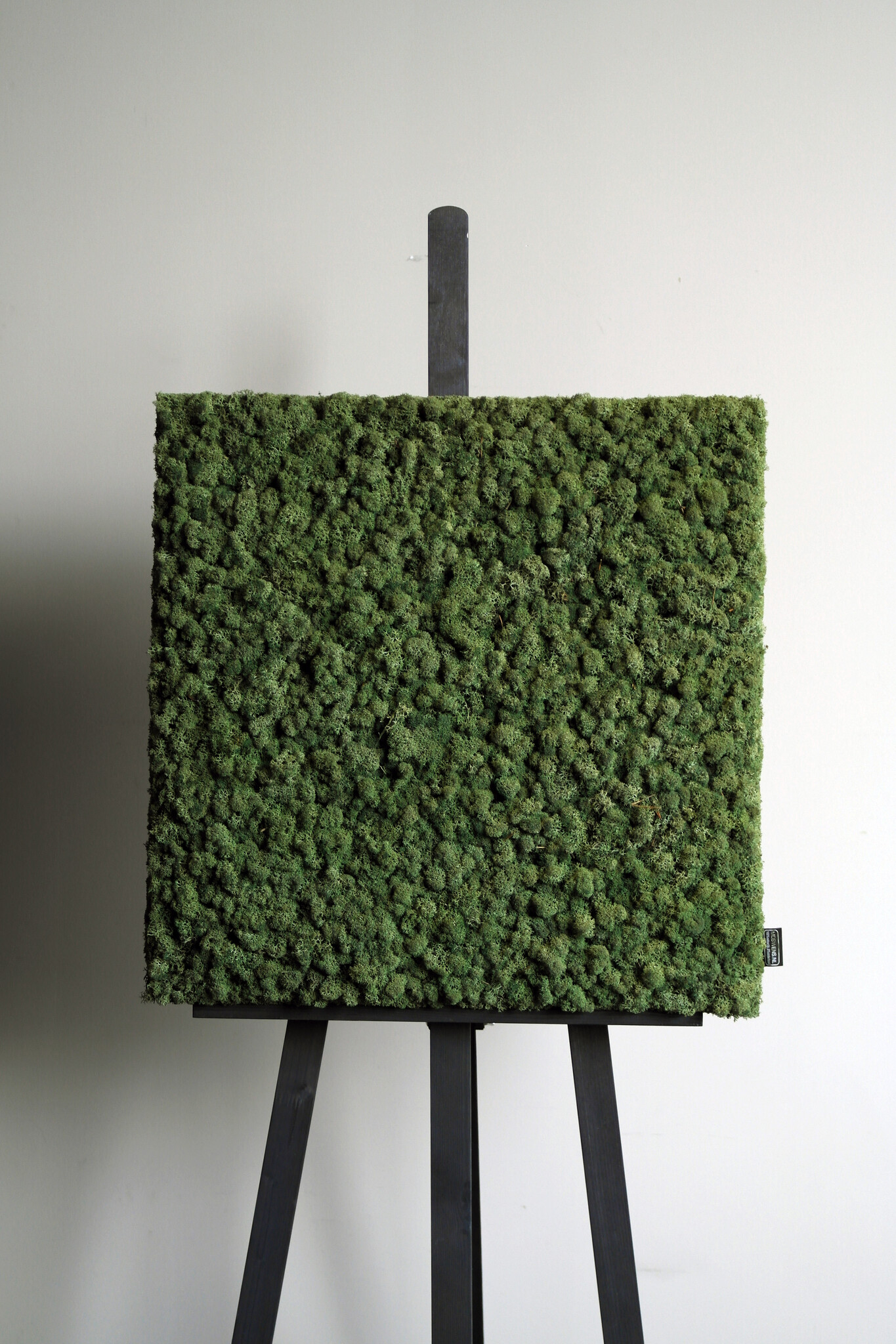 Forest is opgebouwd uit 100% rendiermos in de donkere variant genaamd Forest. Het rendiermos heeft een dikte van +/- 5 cm. Het mos is struikvormig, is zacht en heeft holle vertakkingen. In het mos komen naaldjes voor wat zorgt voor een natuurlijke uitstraling. Wilt u een rustige en luxe uitstraling creëren in uw interieur? Dan is dit mosschilderij in één kleur rendiermos geschikt voor u.