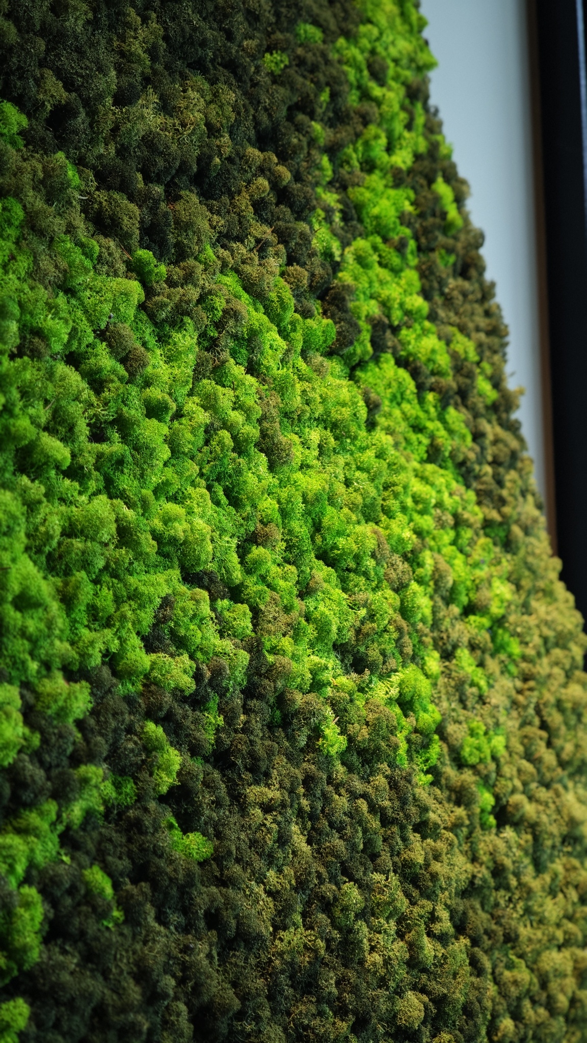 Het toegepaste mos is een 100% natuur product en heeft 0% onderhoud nodig. Een van de eigenschappen en voordelen zijn; hoge akoestische demping, brandvertragend (geïmpregneerd), zeer kleur vast, geen daglicht nodig, vuil afstotend (antistatisch) en omdat het mos niet meer leeft heeft het geen onderhoud nodig zoals water geven, snoeien of bemesten. De moscreaties zijn mooi en zacht om aan te raken en hebben een grote aantrekkingskracht. Onze mossen zijn van de hoogste kwaliteit wat zorgt voor een zéér lange levensduur (10-20 jaar).