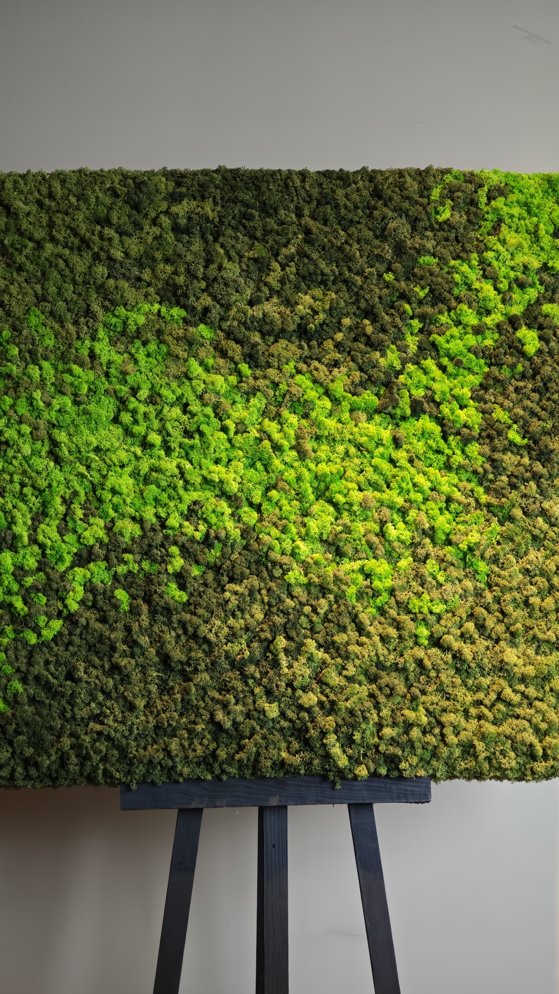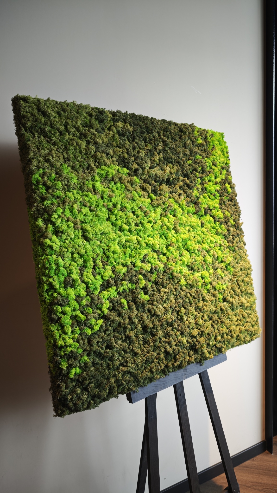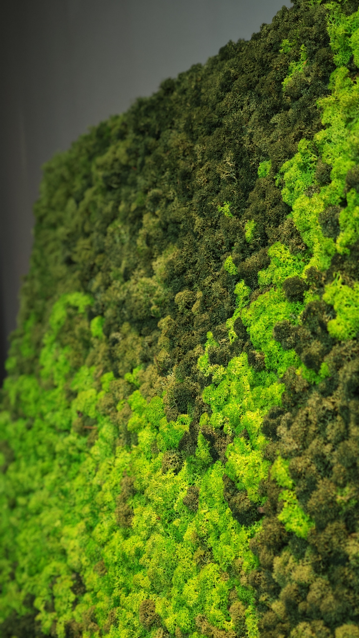 Mosschilderij Loran is samengesteld uit een verfijnde mix van drie tinten rendiermos: Een natuurlijke groene kleur, een donkergroene kleur en een frisse felgroene kleur. Deze combinatie zorgt voor een levendig groen mosschilderij dat elke ruimte frisheid en een vrolijke touch geeft.