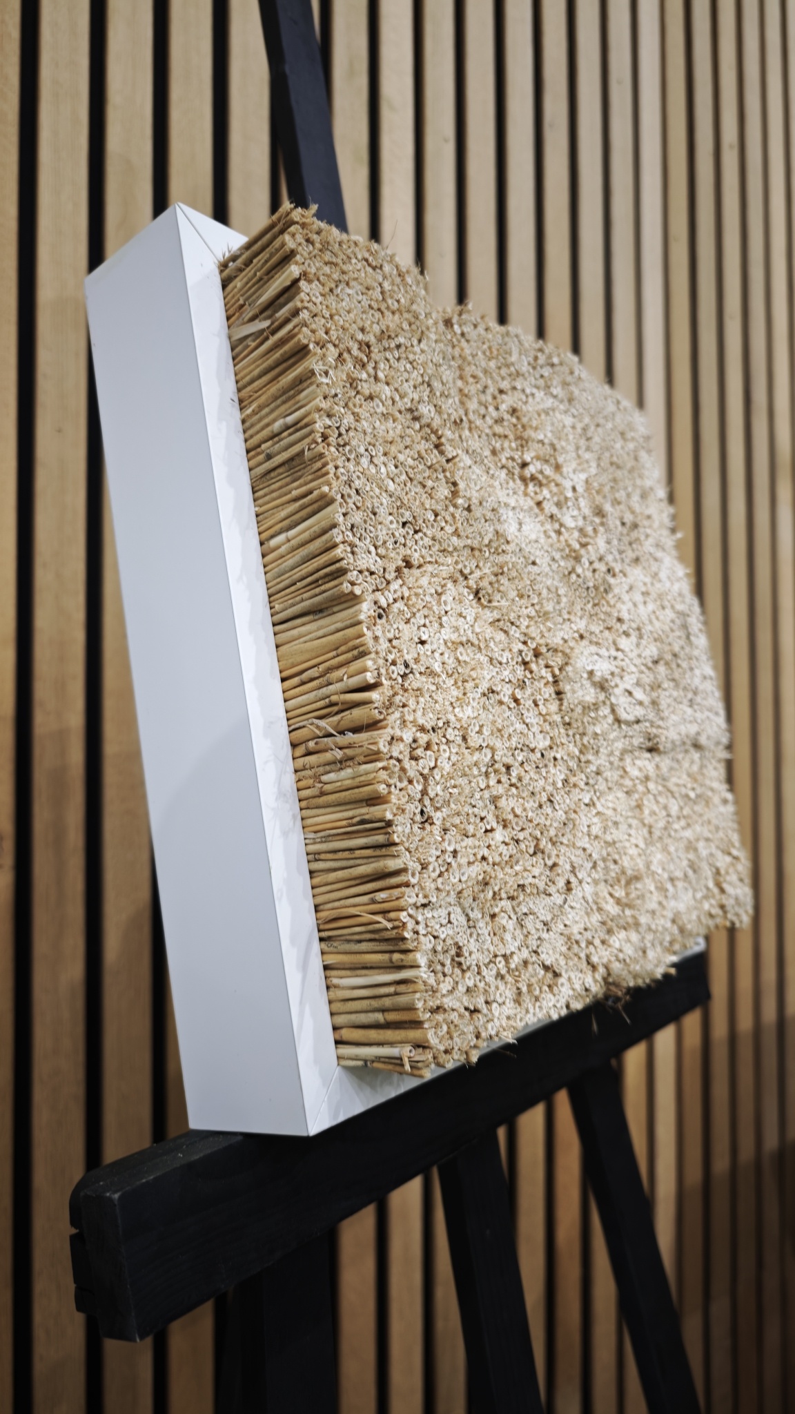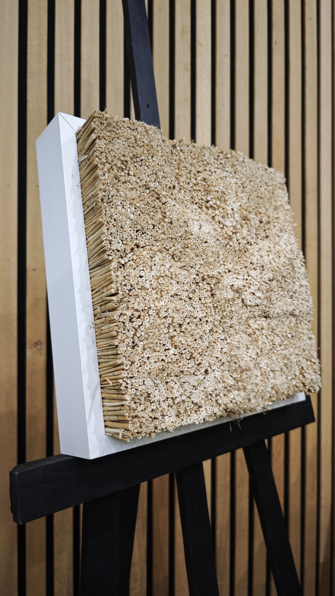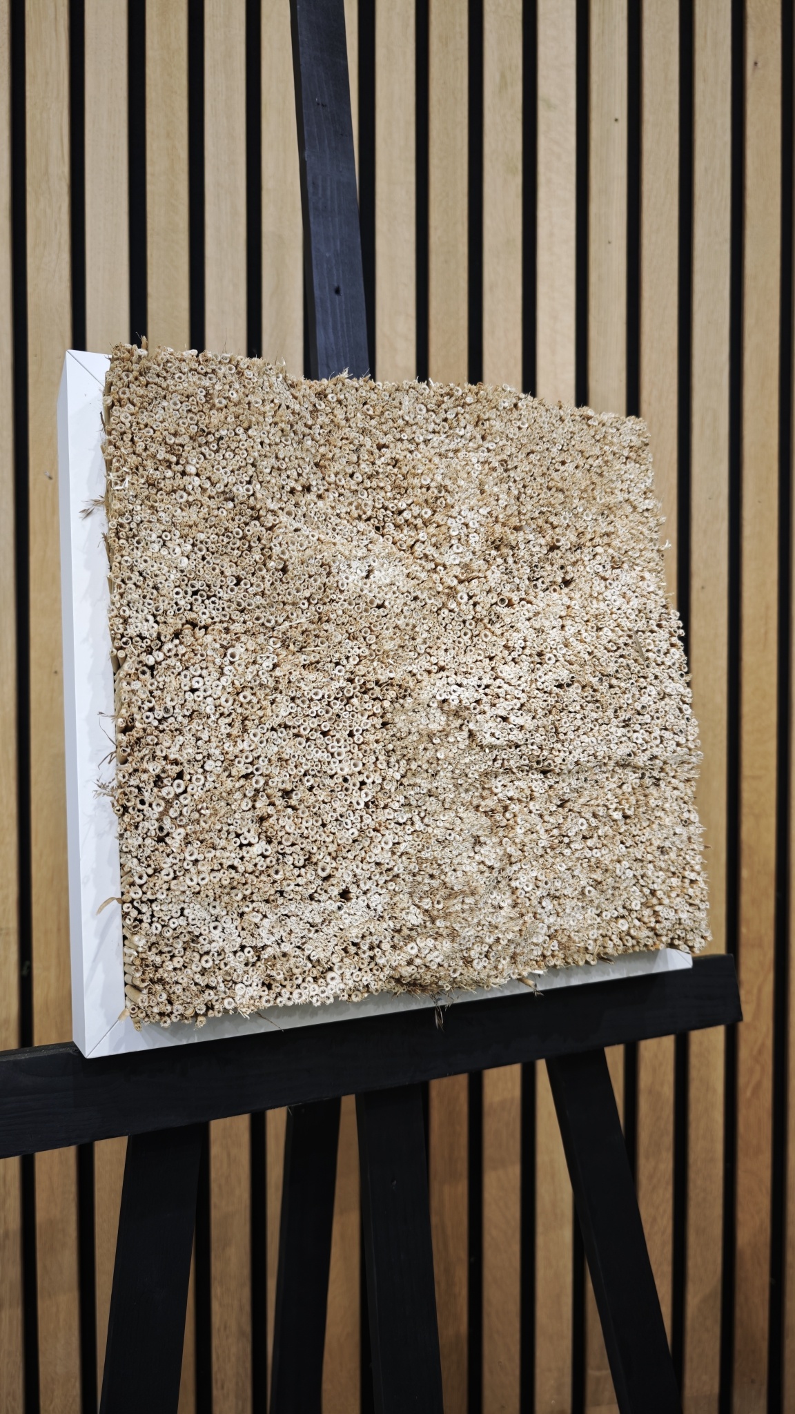 Breng de rust van de natuur in huis met dit prachtige akoestische rietschilderij. Dit unieke rietkunstwerk brengt de schoonheid en rust van de natuur rechtstreeks naar uw interieur. Perfect voor iedereen die op zoek is naar een combinatie van kunst en natuurlijke materialen.