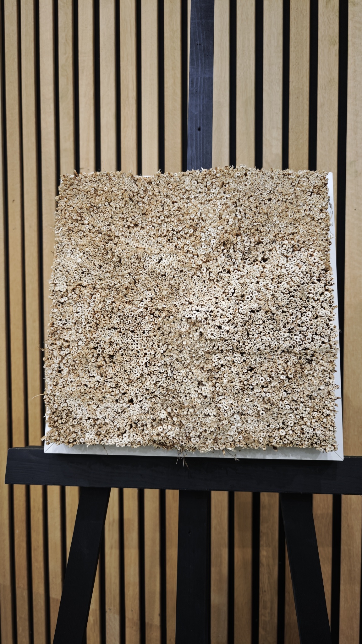 • Hoge Akoestische Demping: De geluidsgolven die tegen het riet aankomen, worden gedempt door de holle stengels. Dit is ideaal voor het verbeteren van de akoestiek de ruimte. Dit maakt het rietschilderij perfect voor kantoren, woonkamers en andere ruimtes waar akoestiek belangrijk is.
