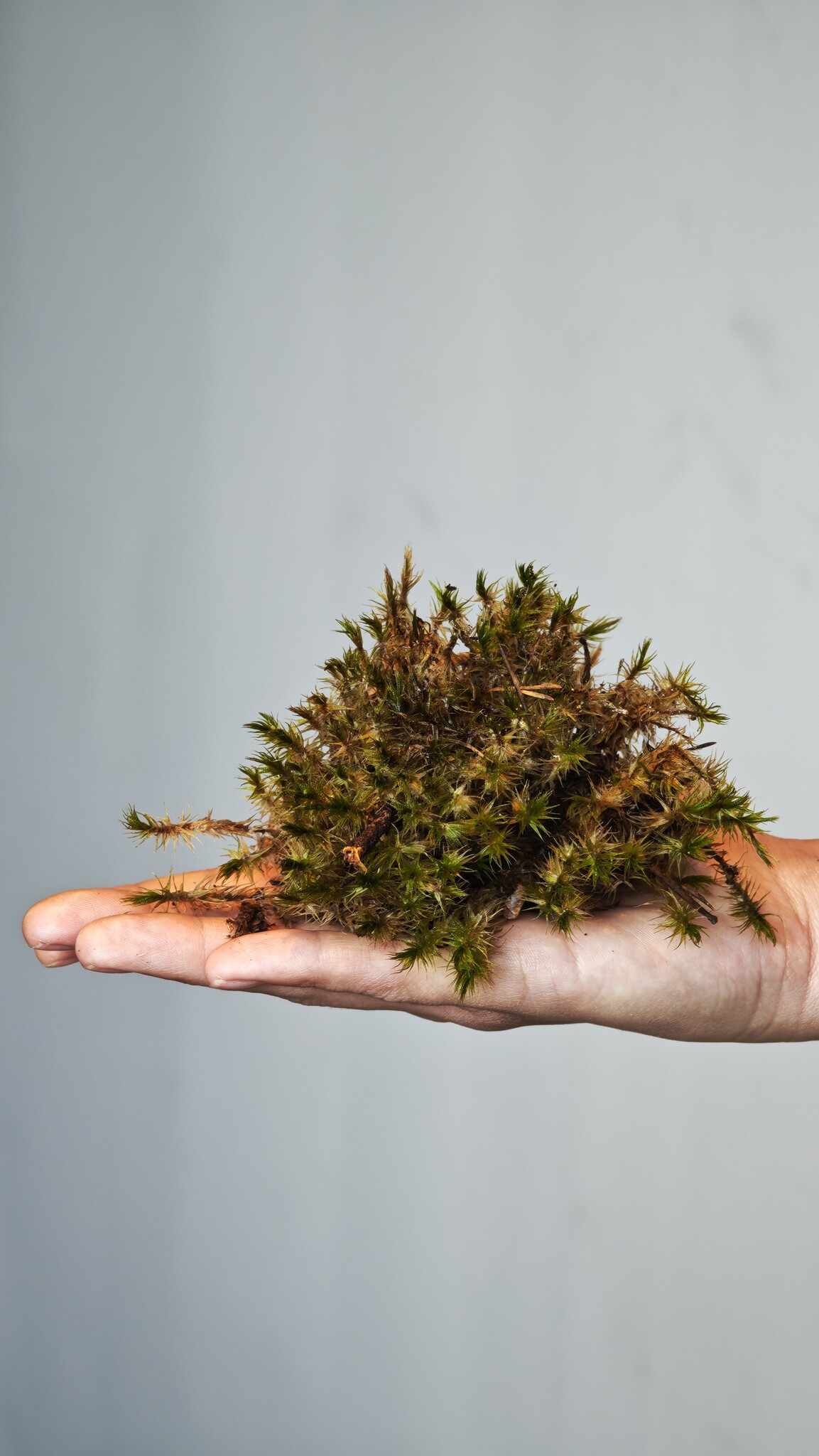 Wordt vochtig geleverd in losse plakkaten of matten, direct klaar voor gebruik. Soms zijn kleine sporenkapsels zichtbaar – een natuurlijk teken van gezond groeiend mos. Elk stuk is uniek in vorm en structuur.
